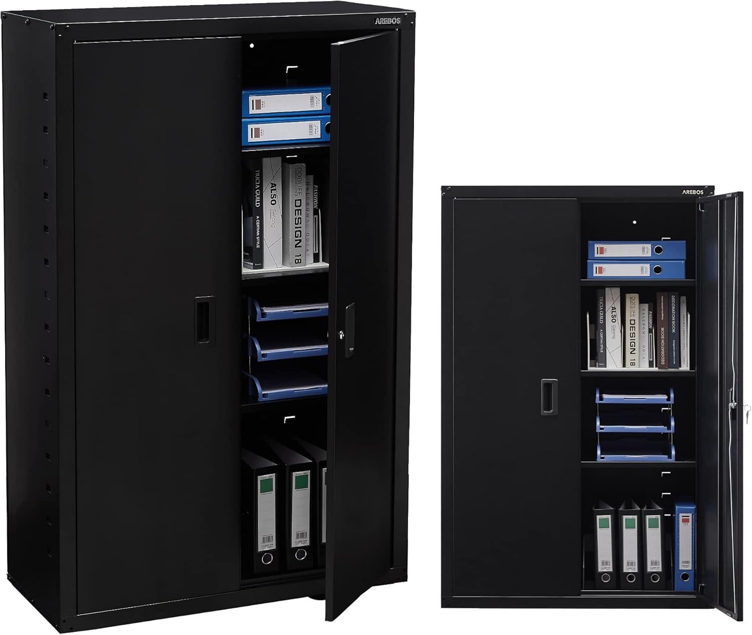 Arebos Armadietto Da Ufficio, 140 X 90 X 40 Cm, 2 Ante, Con 3 Ripiani Regolabili In Altezza, Con Serratura A Cilindro, Colore Nero : Amazon.it: Casa E Cucina