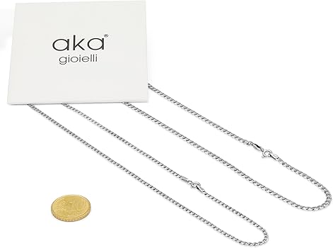 [PACKAGING] Il gioiello verrà spedito all'interno di una scatola regalo originale dove troverai anche un certificato di garanzia e una guida su come conservare e pulire i tuoi gioielli in argento. [OCCASIONI] Collana in argento per donna e uomo. uomo collana maglia massiccio argento catena rettangolare Chiusura con anello a molla pratica e resistente. [CARATTERISTICHE] La lunghezza della collana è di 40 cm / 16 pollici. Larghezza catena 2 mm. [QUALITÀ ITALIANA CERTIFICATA] Gioiello interamente disegnato e creato in Italia da artigiani esperti, con punzone 925 a garanzia di autenticità e massima qualità. Perfetto regalo sia per lui che per lei, adatto alla tua ragazza o ragazzo, fidanzata o fidanzato, moglie o marito, amica o amico, per il compleanno, San Valentino, Natale o Anniversario. Tipo di metallo : Argento [MATERIALI] Il metallo è Argento Sterling 925 anallergico (senza nichel); placcato Rodio* per migliorare la protezione dall'ossidazione, dall'umidità e dagli agenti chimici. Tipo di gemma : Nessuna pietra preziosa Aka Gioielli Catalogo CIELTEAR Collana A Catena In Argento Sterling 925 Da Donna Con Catena Veneziana Da 0,8 Mm, Collana Italiana A Corda, Super Forte E Sottile E Lunga 40,6/45/50/56/61 Cm, 18 Inch, Argento Sterling, : Amazon.it: Moda Collana Argento 925 Donna