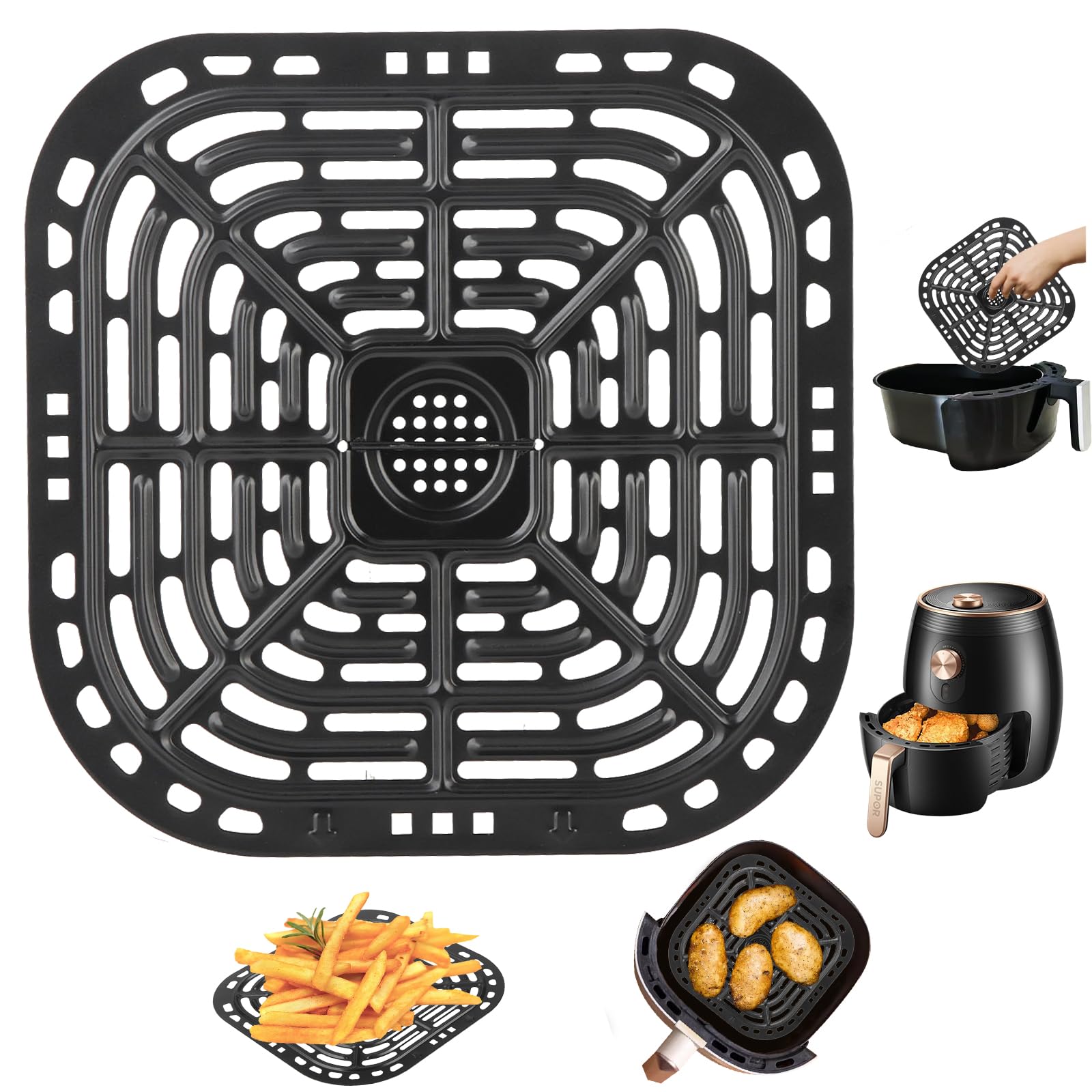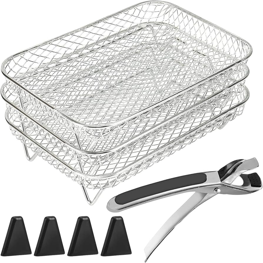 【Sfrutta al massimo lo spazio】 Cremagliera tripla per friggitrice ad aria Il design impilabile della griglia ti consente di sfruttare in modo ottimale lo spazio della tua friggitrice ad aria calda. 【Tre vassoi rimovibili】 L'Air Fryer Rack è dotato di tre pratici vassoi estraibili, Triple Air Fryer Rack che permettono di preparare più piatti contemporaneamente. Ampia applicazione] Una griglia per friggitrice ad aria multifunzionale appositamente progettata per la friggitrice ad aria Ninja e altre friggitrici ad aria simili. Può essere utilizzato su frutta, carne, verdura ed è ottimo per spuntini al forno, cibi Griglia Per Friggitrice Ad Aria Accessori Per Friggitrice Ad Aria Calda, In Acciaio Inox 304 Pirofila Per Friggitrice Ad Aria Il vassoio quadrato della friggitrice ad aria con tre ripiani offre spazio sufficiente per cibi diversi senza sovrapposizioni La griglia per friggitrice ad aria in acciaio inossidabile 304 è un accessorio versatile per la tua cucina, utile per cuocere al forno, grigliare e persino piccole casseruole Vassoio quadrato per friggitrice ad aria Ideale per porzioni più grandi e un uso efficiente della superficie di cottura 【Ampia gamma di applicazioni】 Questa tripla griglia per friggitrice ad aria è adatta per l'uso non solo nelle friggitrici ad aria, nei vassoi quadrati della friggitrice, ma anche nei forni Ninja e nel microonde. Griglia per Airfryer in acciaio inossidabile 304 Perfetto per preparare snack come frutta secca o verdura, griglia per Airfryer in acciaio inossidabile 304 senza attrezzature aggiuntive