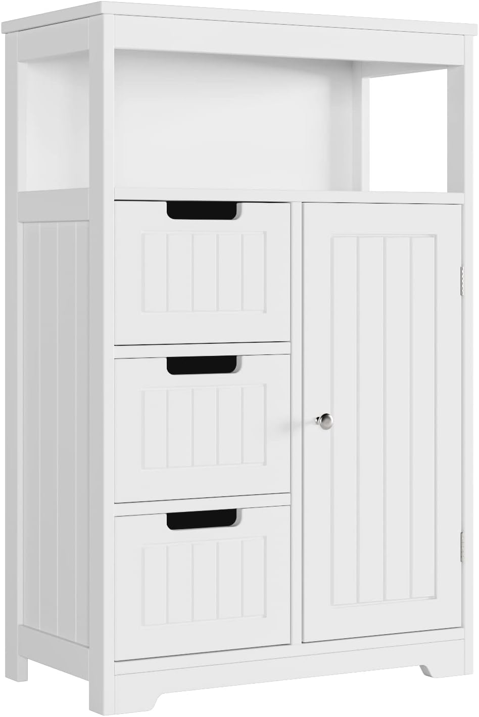 HOCSOK Armadietto Bagno A Terra, Mobiletto Autoportante 4 Ante, Mobile