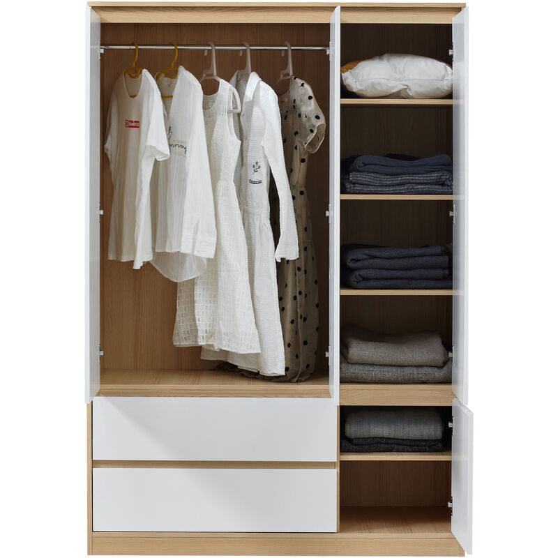En.casa] Armadio Guardaroba Per Camera Da Letto Armadio Chiuso Con Ante A Persiana Scomparti Cassetto Asta Appendiabiti 176 X 80 X 52 Cm MDF Effetto