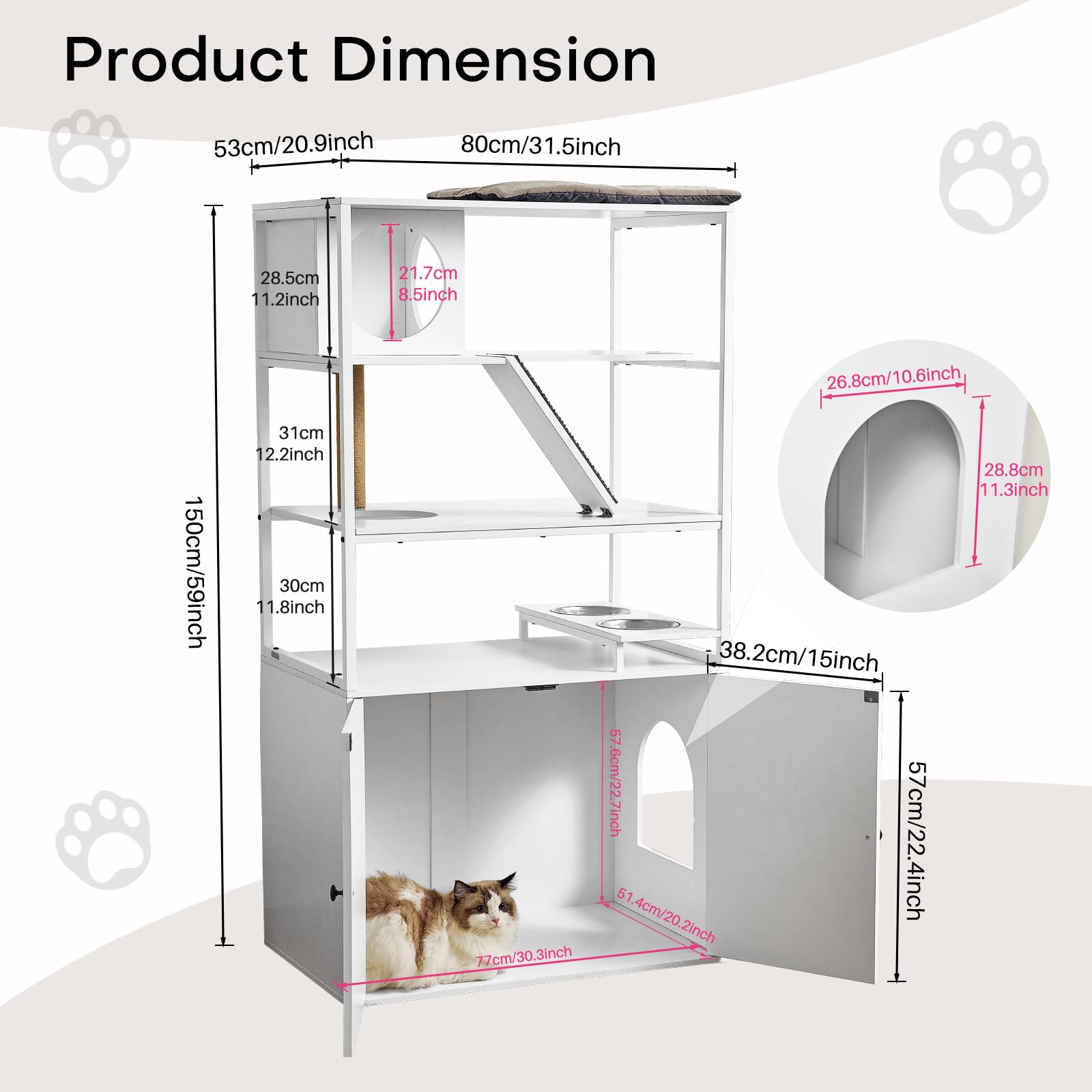 Si prega di misurare le dimensioni della lettiera prima dell'acquisto. Un morbido cuscino rimovibile sulla parte superiore offre un maggiore comfort durante il sonno. Il tappetino tiragraffi integrato e il tiragraffi contrastano il comportamento istintivo del gatto e allo stesso tempo proteggono il vostro arredamento da danni alla superficie. Un morbido cuscino rimovibile sulla parte superiore offre un maggiore comfor Limite efficace della lettiera del gatto: l'armadio chiuso ha dietro la porta le dimensioni L77 X L 51 X H57 CM. Mobili per gatti integrati: questa villa per gatti di qualità superiore combina una lettiera + cucce morbide + aree rialzate e diverse zone + ciotole per il cibo + ampie superfici tiragraffi/pali + cuscini in peluche. Integrato nella tua casa: abbiamo 2 colori per te (bianco / grigio), L'estetica raffinata della custodia unita al design minimalista della struttura in metallo completa facilmente la maggior parte delle estetiche domestiche. Configurazione multilivello: questo mobile per lettiera per gatti ha cinque diversi livelli che invitano ad arrampicarsi, riposare ed esplorare diverse aree di attività fisica e intrattenimento. Descrizione prodotto Questa villa per gatti di qualità superiore combina una lettiera per gatti + cucce morbide + zone rialzate e diverse + ciotole per il cibo + ampie superfici tiragraffi/pali + cuscini in peluche. Indicazioni Si prega di seguire le istruzioni di installazione Dì addio agli odori sgradevoli e agli ambienti disordinati e porta la tua casa a un nuovo standard! Tiragraffi Gatti Arcaplanet Armadio Per Gatti In Legno Massello Con Ruote, Rifugio Per Gatti Interno Ed Esterno, Appartamento Multifunzionale Per Gatti Con Tiragraffi Per Gatti E Lettiera Per Gatti,D : Amazon.it: Prodotti Per Animali Domestici Tiragraffi Per Gatti In Legno