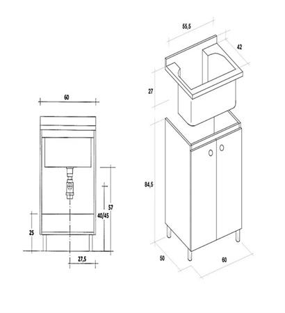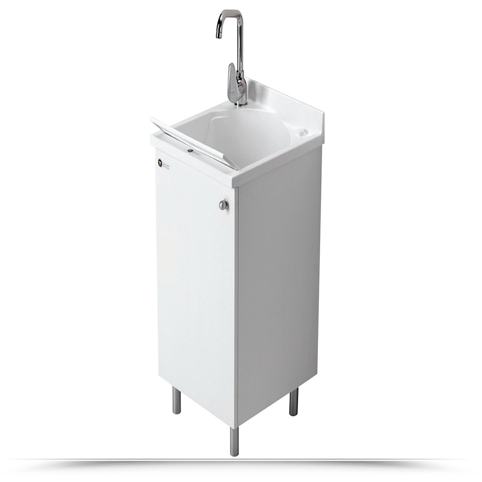 Mobile Lavatoio Interno Arredamenti Montegrappa Look One 45x50 H85 Cm DX Destro Cerniere Economico Piedini Fondo Ripiano Alluminio Struttura Legno Bianco Asse Vasca Termoplastico Lavapanni Pomello