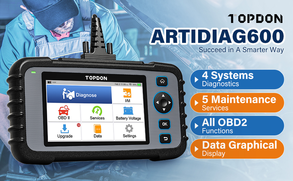 TOPDON Scanner OBD2, ArtiDiag600 Elite, Outil De Diagnostic Automobile