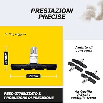 La mescola di gomma estremamente resistente e la forma di queste pastiglie per freni sono appositamente studiate per adattarsi alle caratteristiche specifiche dei V-Brake. DONAZIONI ALLA WORLD BICYCLE RELIEF Per ogni set di pastiglie dei freni, doniamo 25 centesimi alla World Bicycle Relief, un'organizzazione benefica che promuove una maggiore mobilità e indipendenza nei paesi in via di sviluppo attraverso le biciclette. V-Brake Pattini Freno 2 Paio 72mm Asymmetric I Per Shimano, Tektro, Avid, Sram, XLC Etc I Alte Prestazioni I Resistente & Vestibilità Perfetta Pastiglie Freni Se non sei soddisfatto al 100%, sarai rimborsato. ATTENZIONE ALLA SOSTENIBILITÀ Minimo impatto ambientale e massima sostenibilità sono fondamentali nella produzione dei nostri componenti. FRENATA SEMPRE AFFIDABILE Che si tratti di mountain bike, bici ibride o city bike. Qui facciamo affidamento sull'esperienza pratica e sulle intuizioni del nostro team di ciclisti. SISTEMA WATERFLOW - L'innovativo sistema Waterflow con scanalature integrate rimuove rapidamente l'acqua dal profilo del cerchio, garantendo così un notevole miglioramento delle prestazioni di frenata sul bagnato. Per tutti i tipi di bici, dalle touring alle city bike. SISTEMA WATERFLOW: FRENATA OTTIMALE SUL BAGNATO L'innovativo sistema Waterflow con geometria speciale a fori e scanalature rimuove rapidamente l'acqua dal cerchio, garantendo così prestazioni di frenata e sicurezza notevolmente migliorate sul bagnato. Il design ottimizzato mantiene il cerchio sempre pulito. Amazon Italy V-Brake Pattini Freno 2 Paio 72mm Asymmetric I Per Shimano, Tektro, Avid, Sram, XLC Etc I Alte Prestazioni I Resistente & Vestibilità Perfetta Pastiglie Freni : Amazon.it: Sport E Tempo Libero Mechanical Disc Siamo sempre attenti ai nostri clienti, ai dipendenti e ai partner. DUREVOLI E AFFIDABILI - Per una durata extra con una potenza frenante sempre elevata. OTTIMIZZATI PER LA SICUREZZA ED IL COMFORT Miglior contatto possibile con il cerchio, elevata potenza frenante e controllo preciso anche con il freddo e sul bagnato: con la mescola ottimizzata di gomma e il design innovativo, ottieni il massimo livello di sicurezza e comfort in tutte le condizioni atmosferiche. OTTIMIZZATI PER LE MIGLIORI PRESTAZIONI DI FRENATA I V-Brake offrono la massima efficienza frenante con i freni su cerchio. Adatta a tutte le condizioni atmosferiche e ad ogni temperatura. PER TUTTI I V-BRAKES - La mescola di gomma e la forma ottimizzate si adattano perfettamente a tutti i freni su cerchio V-Brake Shimano e di altri produttori. Grazie alla mescola ottimizzata di gomma e alla loro forma specifica, queste pastiglie ti permettono di sfruttare al massimo i tuoi freni, sia Shimano, SRAM, Tektro, sia di altri produttori.