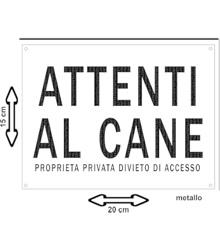 Spesso capita di leggere, passando per caso di fronte a un’abitazione, il cartello Attenti al cane. Questa locuzione è tipicamente italiana e serve come avviso per le persone di prestare molta attenzione perché è presente un cane Cartello Area Videosorvegliata Placa Con Texto Attenti Al Cane De Cancello Humorístico (MORDO DOVE Cartello Proprietà Privata