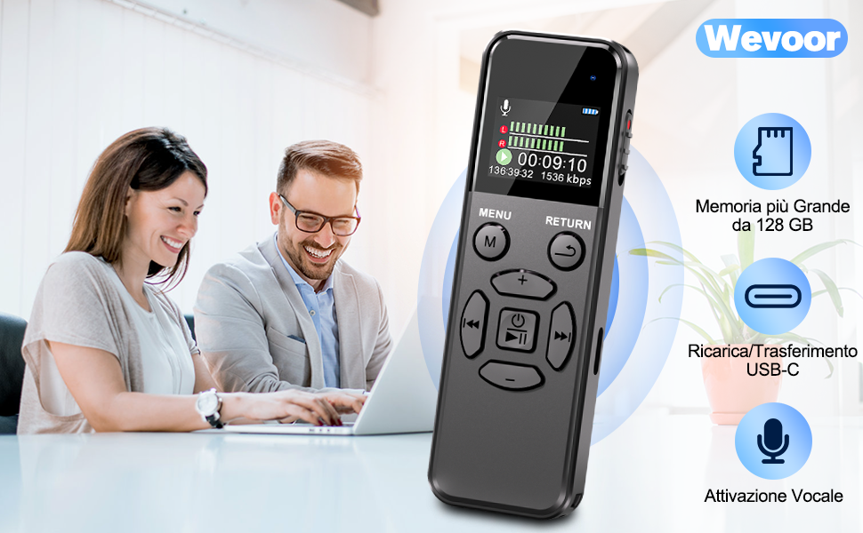 Ideale per registrare senza interruzioni o silenzi inutili. Traduzione offline La funzione di registrazione attivata dalla voce di CLEVERTALK è progettata per massimizzare l’efficienza e il comfort dell’utente. Il suo design compatto e leggero ti consente di portarti con te ovunque e iniziare a registrare in pochi secondi, così da non perdere mai un'idea o dettaglio importante. Tutte queste funzioni sono progettate per aiutarti a catturare facilmente idee, momenti e attività importanti, sia al lavoro, a casa che ai tuoi studi, per sfruttare al meglio ogni giorno. Protezione con password Mantieni le registrazioni sicure e private con la funzione di protezione con password. Questo consente di risparmiare spazio di archiviazione, batteria e di semplificare l’ascolto successivo eliminando le parti inutili. Il registratore professionale CLEVERTALK offre 128 GB di memoria totale, consentendo di memorizzare fino a 7.000 ore di registrazione in qualità 32 kbps. Ciò consente di catturare voci con grande chiarezza e fedeltà, riproducendo il suono originale in modo più realistico. Grazie al suo sistema intelligente di rilevamento del suono, CLEVERTALK inizia automaticamente a registrare non appena percepisce una voce o un rumore rilevante, e si mette automaticamente in pausa quando rileva il silenzio. Ideale per chi ha bisogno di registrare e salvare grandi volumi audio senza preoccuparsi dello spazio disponibile. Con CLEVERTALK puoi registrare in modo discreto, senza dover toccare il dispositivo, assicurandoti di non perdere mai un’idea importante o una conversazione preziosa.4o Dotata di slot per schede esterne, porta USB-C, ripetizione A-B, registrazione a segmenti, riproduzione a velocità variabile, registrazione programmata, protezione con password, attivazione vocale e modalità di riproduzione multiple. Descrizione [ Registratore USB Potente - Grande Capacità e Ricarica Rapida]Con 128 GB di archiviazione e una ricarica rapida di 2 ore , questo dispositivo soddisfa facilmente le tue esigenze di registrazione quotidiana. Registratore Vocale Digitale Profes Incorpora un chip di registrazione professionale modello 2159 insieme alla tecnologia intelligente di riduzione del rumore DSP a 7 livelli e controllo del guadagno regolabile. Registratore Vocale Per Casa Dittafono Professionale Registratore Digitale Ad Attivazione Vocale Trasparente Lettore Stereo A Velocità Variabile PCM Registrazione Di Riunioni Vocale A Testo - AliExpress Registratore Vocale Portatile Casa Attivazione vocale intelligente e configurabile: CLEVERTALK inizia a registrare automaticamente quando rileva il suono, consentendo di catturare solo l'importante e risparmiare batteria e spazio di archiviazione. Design premium in alluminio resistente: realizzato con un alloggiamento in alluminio anodizzato di alta qualità, CleverTalk combina durata e stile in un corpo compatto e leggero. Cattura ogni parola con grande chiarezza, anche in ambienti rumorosi, garantendo registrazioni nitide e professionali.