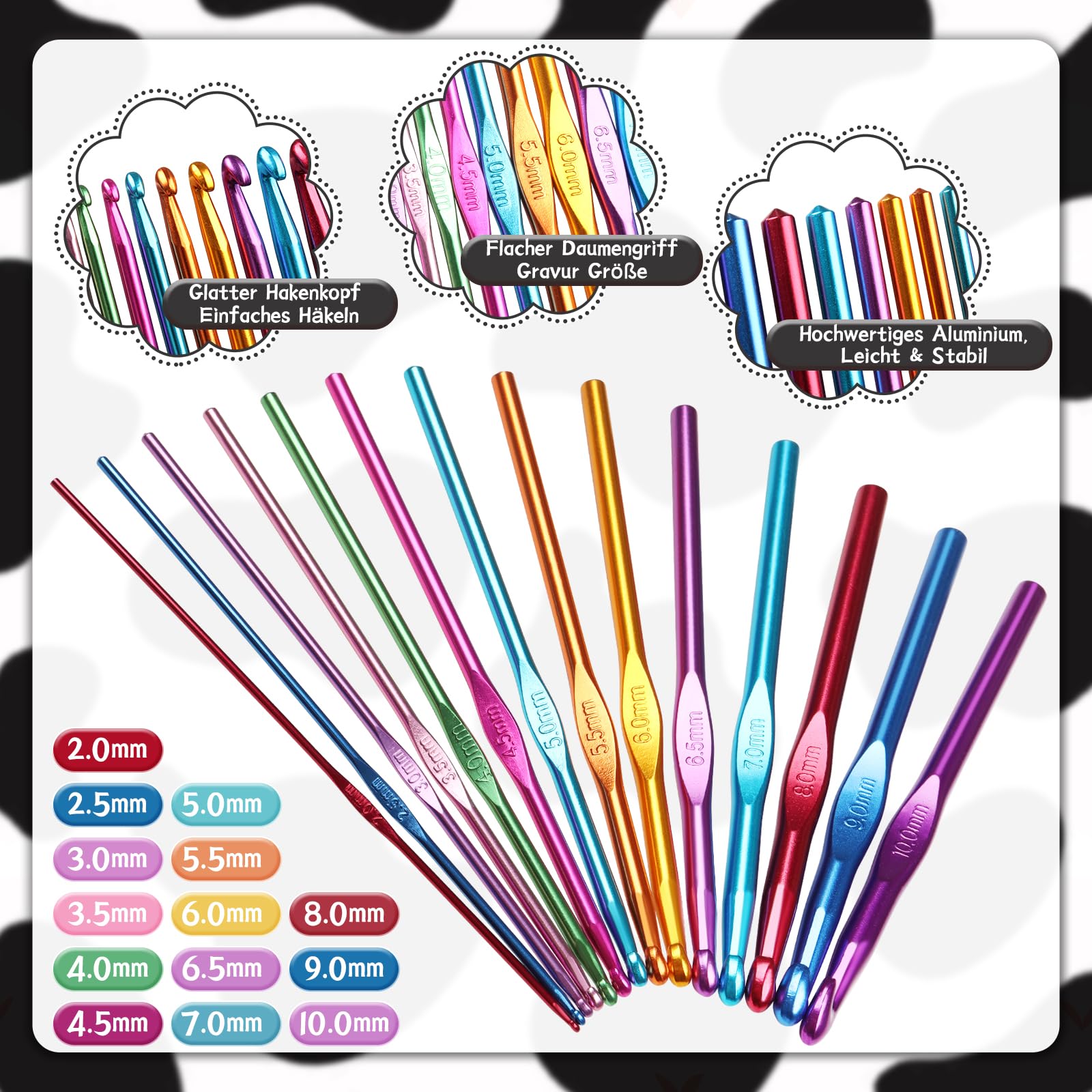 Niente più fastidio o crampi alle mani quando si lavora all'uncinetto più a lungo. Questo kit all-in-one è il regalo perfetto per chiunque impari l'uncinetto e un regalo ideale per qualsiasi amante dell'artigianato; è anche un regalo pratico ideale per mamma, nonna, zia, ragazze, principianti, ecc. Il lungo uncinetto in alluminio è profondamente incastonato nell'impugnatura in silicone morbido e la combinazione è più solida e durevole e non cadrà Rispetto ad altri uncinetti con segni stampati, ha una durata maggiore e non si preoccupa dello sbiadimento Uncinetto 2.0mm-8.0mm Uncinetto Set Crochet Kit, Set Uncinetti Ergonomici per Principianti DIY Giocattoli con Scatola, per Ragazze Donne. Dimensioni --Compatto e portatile Le dimensioni portatili sono adatte per essere trasportate nello zaino o nella borsa. [Adatto ai pazienti con artrite]: i nostri uncinetti per principianti hanno un'impugnatura morbida e confortevole, che fornisce una presa ergonomica e riduce l'affaticamento della mano. Principianti Aucuu Set Di Uncinetti, 47 Pezzi Uncinetti Set, 12 PCS Kit Uncinetto Caratteristiche: ---Ganci lisci e robusti Il materiale e la lavorazione di alta qualità rendono i ferri da maglia per l'uncinetto robusti e lisci. Ottimo per pazienti con artrite e principianti [Set pratico per uncinetto]: il nostro set di uncinetti include 12 uncinetti in silicone di diverse dimensioni, da 2 mm a 8 mm, per soddisfare tutte le tue esigenze di uncinetto. [Incisione delle dimensioni]: il nostro set di uncinetti ha le dimensioni incise sull'impugnatura di ogni uncinetto. [Materiali di alta qualità]: i nostri uncinetti sono realizzati in materiale di alluminio di alta qualità, robusto e durevole. Specifiche: Dimensioni del prodotto: Lunghezza: 14 cm Materiale del prodotto: Silicone + alluminio Contenuto della confezione 12 pezzi di uncinetti: Uncinetto da 2,0 mm x 1 pz, uncinetto da 2,5 mm x 1 pz Uncinetto da 3 mm x 1 pz, uncinetto da 3,5 mm x 1 pz Uncinetto da 4 mm x 1 pz, uncinetto da 4,5 mm x 1 pz Uncinetto da 5 mm x 1 pz, uncinetto da 5,5 mm x 1 pz Uncinetto da 6 mm x 1 pz, uncinetto da 6,5 mm x 1 pz Uncinetto da 7 mm x 1 pz, uncinetto da 8 mm x 1 pz Altri accessori: Segnapunti per uncinetto (colori casuali) x 22 pz Anelli per uncinetto per uncinetto con taglierina (colore casuale) x 1 pz kit per uncinetto per adulti x 1 set (9 aghi) Forbici (colore casuale) x1 pcs Contatore di righe x1 pz Metro a nastro x1 pz Custodia per uncinetto blu x 1 pz Note: -Si prega di consentire un leggero errore di 1-3 mm dovuto alla misurazione manuale. L'impugnatura per uncinetto è realizzata in silicone di alta qualità e dal design ergonomico, rendendola più comoda da impugnare e meno incline a stancarsi.