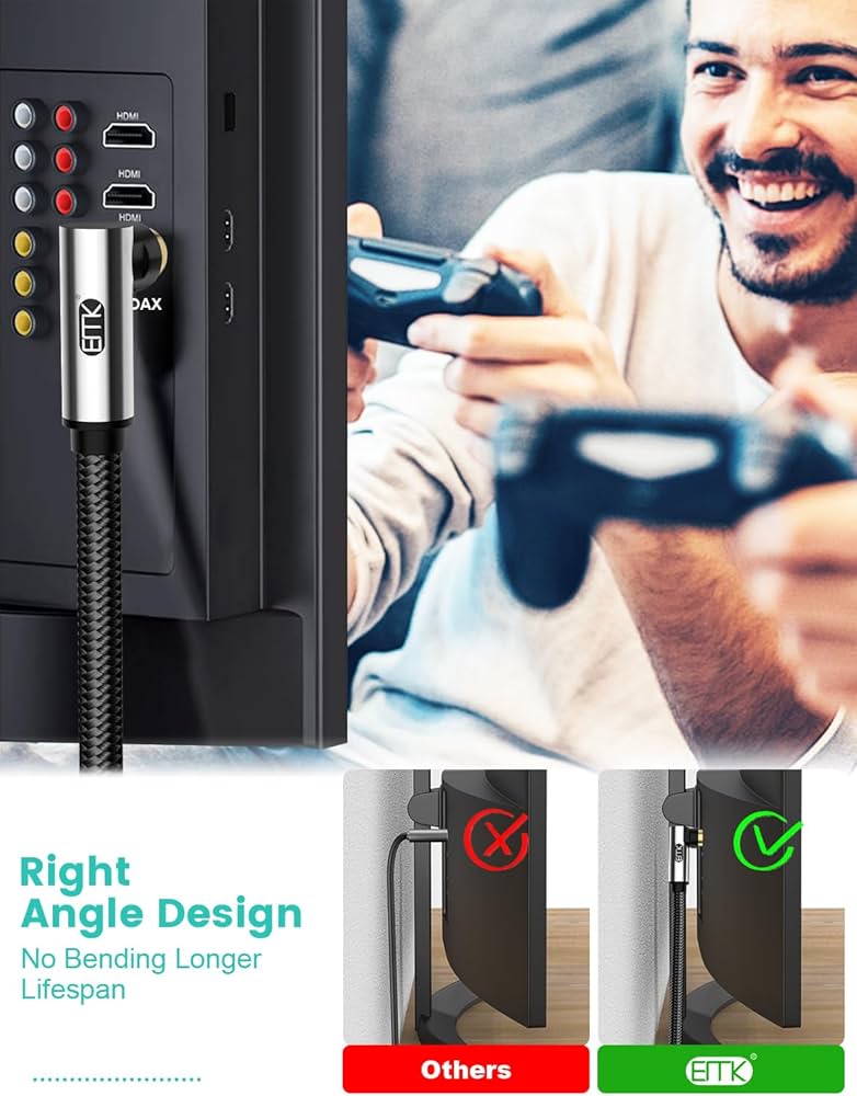 Materiale: rame privo di ossigeno di elevata purezza (99,99% OFC) Diametro esterno: 6.0mm 90 gradi cavo Subwoofer angolo retto Garanzia e supporto: Il nostro fornisce una garanzia di 12 mesi per il cavo subwoofer digitale e una garanzia di rimborso di 30 giorni; Non esitate a contattare il nostro team di assistenza clienti per qualsiasi problema. Connettore: 90 gradi angolo retto RCA a maschio RCA Compra EMK Cavo Subwoofer Angolo Retto Cavo RCA Cavi Audio Cassiale Digitale RCA a Maschio 90 gradi Cavi COAXIAL per Smart-TV, Altoparlante, DAC Hi-Fi, Soundbar (5 metri). SPEDIZIONE GRATUITA su ordini idonei Il connettore placcato in oro adotta un design del gancio per renderlo più stabile quando collegato all'attrezzatura, garantendo una trasmissione di alta qualità. Descrizione prodotto EMK Cavo audio coassiale angolo retto digitale a 90 gradi EMK Cavo Audio Subwoofer RCA a RCA Specifica: Tipo di cavo: Cavo audio coassiale RCA angolo retto digitale a 90 gradi Subwoofer Auto EMK Cavo Subwoofer Cavo Audio Coassiale Angolo Retto Audio Digitale RCA A RCA Doppio 90 Gradi Cavo Antenna Tv Maschio Femmina Ampia compatibilità: funziona alla grande con HDTV, sistemi Home Theater, amplificatore Hi-fi, soundbar, giradischi, preamplificatore Phonon, console di gioco, apparecchiature audio ricevitore A/V (compatibile con tutti gli ingressi/uscite RCA). Il pacchetto include: 1 x cavo audio coassiale RCA angolo retto (Nota: questo è 1 cavo per 1 ordine. Il cavo morbido lo rende facile da trasportare e adatto per piccoli spazi. Aggiornamento 90 gradi angolo retto: 90 gradi cavo RCA rende il cavo più adatto per dispositivi a parete, risolvendo l'imbarazzo di spazi limitati tra parete e dispositivo. Non esitate a contattarci se avete domande.)