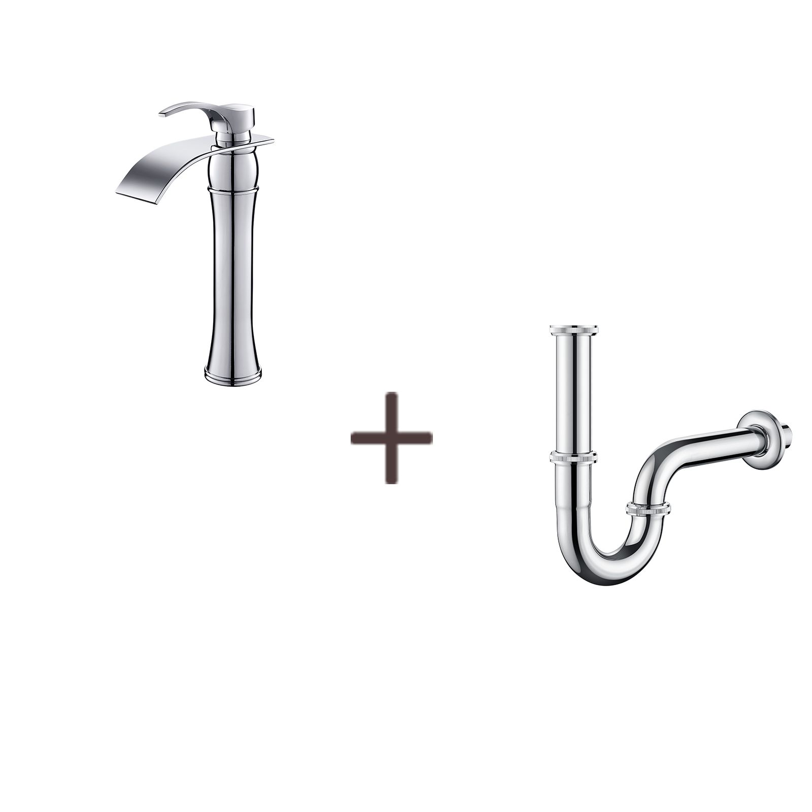 Auralum Miscelatore Lavabo Cascata Rubinetto Lavabo/Lavabo Alto Becco Moocommand, Cromato+Sifone