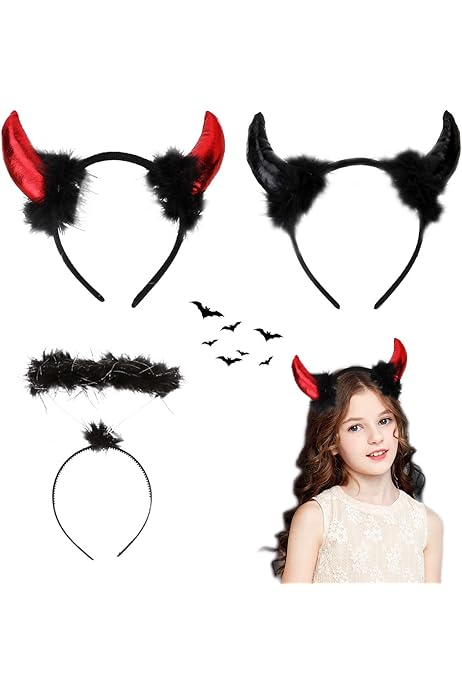 Bluelves 2 Pezzi Corna Diavolo Halloween Aureola Angelo Fascia,Rosso Orecchie Diavolo Fascia + Nera Aureola Angelo Cerchietti,Diavolo Accessori Fascia Per Carnevale Halloween Cosplay Festa : Amazon.it: Moda