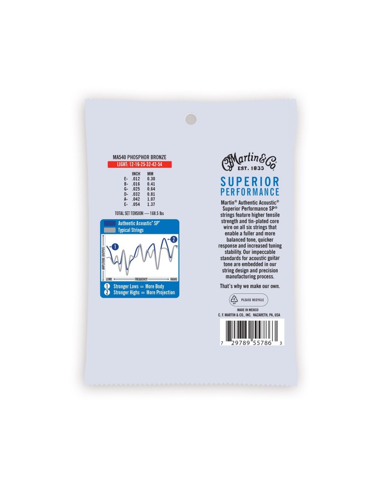 Chitarra Acustica Martin MA550 Authentic Acoustic SP 92/8 Phosphor Bronze Medium 13-56 (3-Pack Bundle Chitarra 12 Corde Scopri la vera voce della tua chitarra con questo pacchetto di corde per chitarra di livello professionale. Le corde per chitarra acustica MA540 di Martin & Co della serie Authentic Acoustic SP ® sono composte da un avvolgimento in Fosforo Bronzo di alta qualità su filo ultra resistente alla trazione e alla corrosione. Offrono un timbro genuino ed equilibrato Corde superiori: queste corde sono progettate per prosperare durante rigorosi programmi di pratica e prestazioni. Corde acustiche leggere: misura da una corda E alta 0,01 cm a una corda E bassa da 0,1 cm, queste sono corde per chitarra acustica di alta qualità che illuminano l'accordatura naturale della tua chitarra, tra cui tenore, toni medi e basso. Hanno una tensione di 168,5. Acustico autentico: con Martin Authentic Acoustic, ottieni un set di corde progettate per prestazioni e suonabilità. Usa queste stringhe in qualsiasi genere: country, bluegrass, folk, blues, rock e altro ancora. Suoni versatili per corde: progettate per far risaltare un tono coerente e vero dalla tua chitarra, queste corde per chitarra possono essere utilizzate per fingerpicking, flat picking e altri metodi.