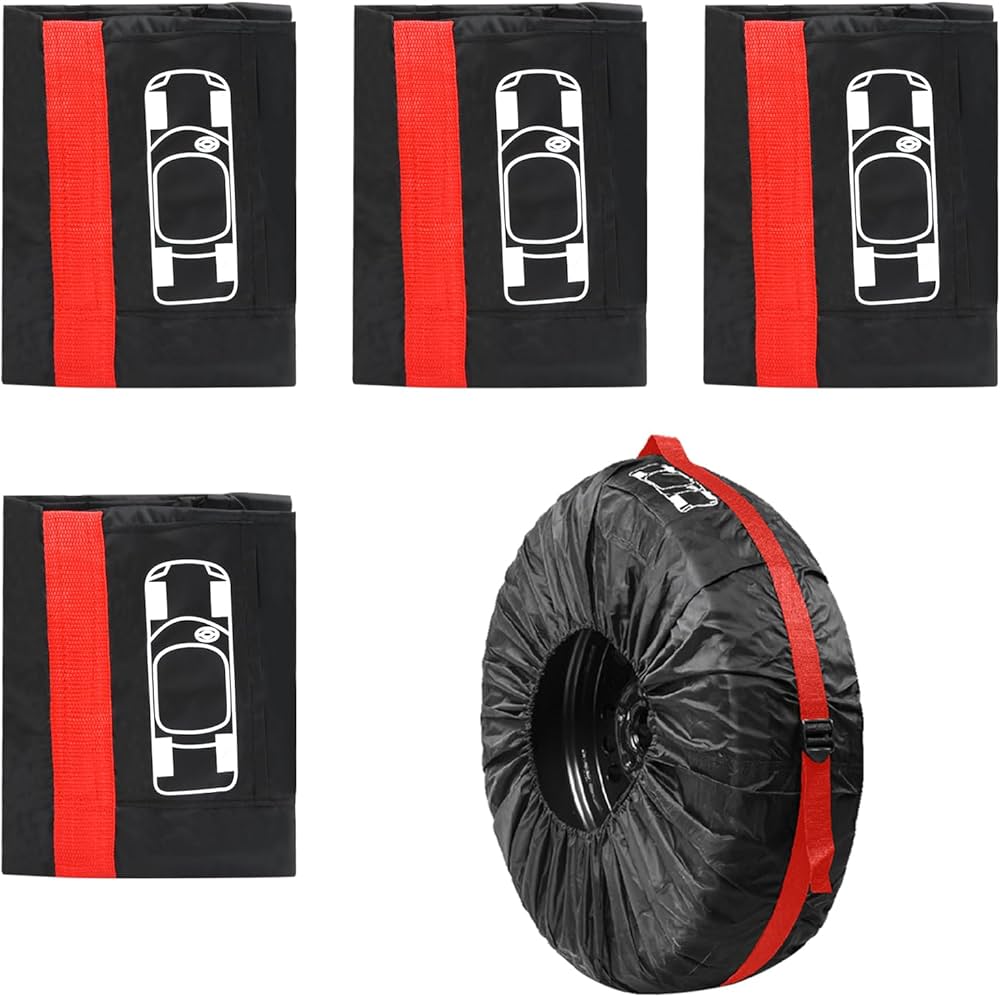Set Di 4 Borse Per Pneumatici, Borse Porta Gomme Auto, 19-23 Pollici Copriruota Custodia Per Ruota Protezione, Auto Ruota Copertura, Impermeabili Copertura Della Ruota Di Scorta (Rosso + Nero