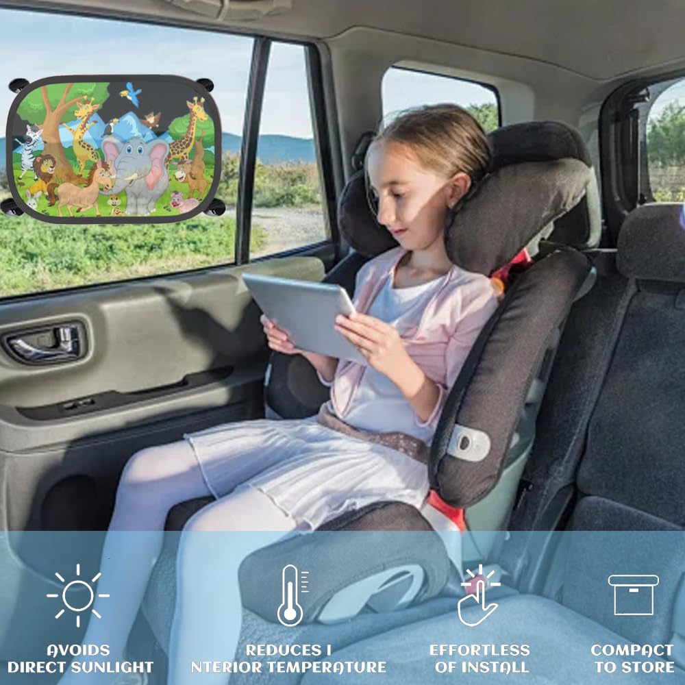 2 Pezzi Tendine Parasole Auto Bambini Con Ventose, Animali