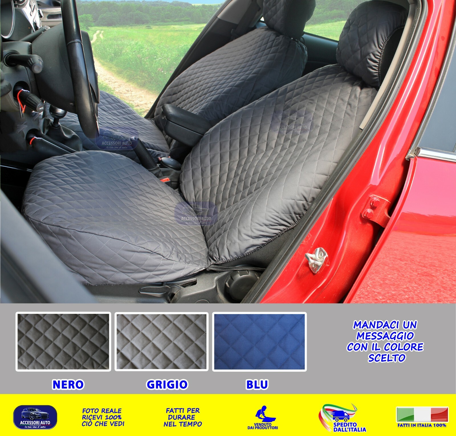 Perfetti per preservare gli interni dall'usura quotidiana, sono ideali per chi desidera mantenere la propria vettura in ottime condizioni. Copri Sedili Panda Fiat Italfodere - Accessori Auto - Coprisedili Auto Su Misura Per Fiat Panda III Dal 2012 In Poi - Anteriori Coprisedili Per Fiat Panda Un tocco di eleganza e funzionalità per migliorare l'esperienza di guida. Facile da installare: I nostri coprisedili Fiat Panda sono progettati per un'installazione semplice e rapida. Confronta 64 offerte per Coprisedile Su Misura Per Panda a partire da 32,99 € · Risparmia con i migliori codici sconto in Auto e Moto Ogni coprisedile auto è creato con attenzione ai dettagli, assicurando eleganza e qualità superiore. Made in Italy: Esprimi il tuo stile con copri sedili Panda Fiat fatti a mano in Italia. Questi copri sedili per auto offrono protezione completa e un design elegante. Perfetti come accessori auto distintivi. Inoltre, i materiali resistenti garantiscono una lunga durata, offrendo una protezione efficace, contro macchie, polvere quotidiana. Proteggi e rinnova gli interni del tuo veicolo con un accessorio pratico e resistente. Il loro stile raffinato, si integra armoniosamente con l'abitacolo, valorizzando l'estetica e il comfort dello stesso. Offre una protezione efficace contro sporco usura e liquidi mantenendo i sedili sempre in ottime condizioni. copri sedile auto, Fiat Panda coprisedili Grazie al design intelligente, si adattano perfettamente ai sedili senza compromettere la funzionalità degli airbag laterali. Realizzati con materiali pregiati e lavorati con cura artigianale, offrono un tocco di classe agli interni della tua vettura. Il design esclusivo unisce tradizione e innovazione, garantendo comfort, resistenza e un’estetica raffinata per ogni viaggio, e per ogni giorno.
