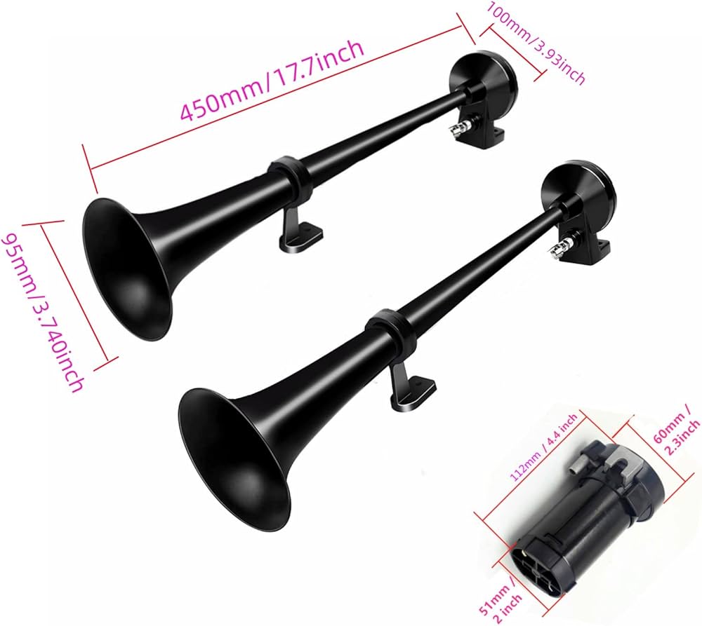 YIYIDA Car Horn Corno Della Nave Clacson Per Auto Nero 170db Corno D'aria Per Auto 12V Corno Del Camion Doppio Tubo Zinco Cromo Corno Elettrico