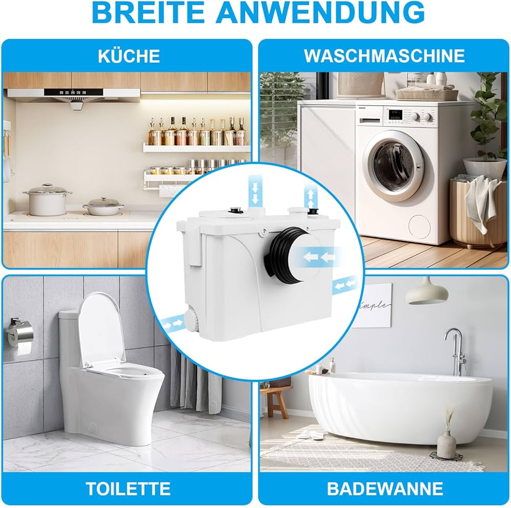 Può contenere rifiuti da toilette, lavandini, vasche da bagno, docce, lavatrici e lavastoviglie. Materiale lama: acciaio inossidabile Abbiamo diversi moderni magazzini e avanzati sistemi di gestione del magazzino. Comodo e silenzioso Quasi nessun rumore di lavoro. Impianto di sollevamento 4 in 1: dispone di quattro prese d'acqua e una apertura di scarico. Corsa verticale massima: 9 m Prestazioni potenti 700 W di potenza, può produrre 180 litri di acque reflue al minuto Materiale della custodia: plastica sollevamento aqualift stazione acque scarico impianto drenaggio soluzione compatta grassi kessel Classe di portezione: IPX4 Pompa Ad Immersione Stazione Di Sollevamento Automatica Per Acque Reflue SANIFOS 250 By Trituratore Wc Massima pressione di pompaggio orizzontale fino a 90 M. Il dispositivo con quattro prese d'acqua e un foro di drenaggio è in grado di pompare in modo affidabile liquami fino a 9 metri di altezza e fino a 90 metri Il sistema di sollevamento è azionato da un potente motore da 700 watt; ciò consente alla stazione di sollevamento di pompare fino a 180 litri di acque reflue al minuto e garantisce la triturazione dei componenti solidi delle acque reflue. Resiste all'acqua calda fino a 50 °C. Potenza 700 W – Con lame in acciaio inox, potenza 700 Watt, una capacità massima di 180 litri/minuto, silenzioso e robusto. Gestiamo l'ampia gamma di prodotti in tutta Europa e siamo sinonimo di qualità elevata e sicura con una gamma diversificata. Diametro interno del connettore del tubo di ingresso: 40 mm Corsa orizzontale massima: 90 m possono essere facilmente collegati. Tensione di rete: 220-240 V, 50 Hz Capacità massima: 180 l/min Completamente automatico La pompa per acque reflue completamente automatica è dotata di pulsanti manuali, che possono trattare le acque reflue in modo efficiente e rapido. Libera le tue mani! Versatilità: i dispositivi di sollevamento delle acque reflue vengono utilizzati per pompare le acque reflue al di sotto del livello di ritorno. L'uscita orizzontale è fino a 90 m e l'uscita verticale è di 9 m. Diametro esterno del raccordo del tubo di ingresso: 50 mm Dati - Dimensioni: 42 x 28 x 17 cm (lunghezza x larghezza x altezza), diametro interno del tubo di ingresso: 40 mm, diametro dell'apertura inferiore del tubo: 100 mm.