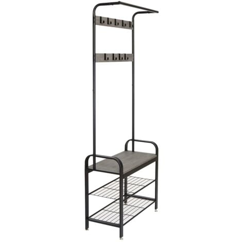 VASAGLE Appendiabiti, Attaccapanni Autoportante, Scarpiera Con Panca, Ganci Rimovibili, Mobile