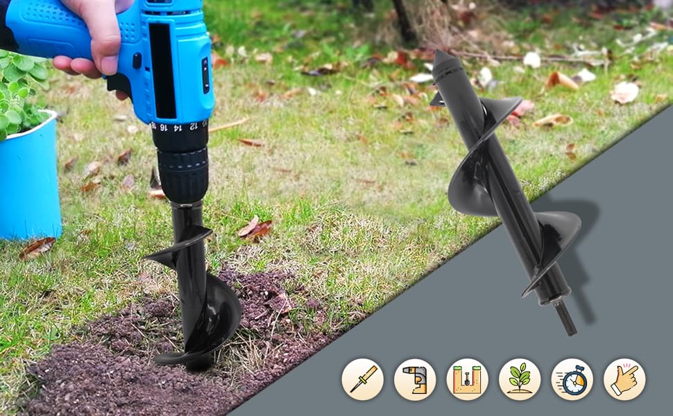 Coclea Per Trapano WERHE 100 Mm Ø, 450 Mm Lunghezza - Coclea Da Giardino Per Avvitatore A Batteria Per Piantare, Fiori E Scavare Buche - Strumento Di Scavo Per Il Giardino Trivella A Batteria