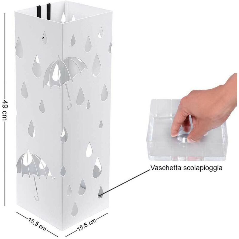 PORTAOMBRELLI STAND IN Ferro Design BAK3B Forma Quadrata Nero Con Decorazione In - EUR 47,99. IN VENDITA! Bellissimo portaombrelli di design, minimale e moderno decorato con un intarsio a 297322477997 I materiali utilizzati e la loro lavorazione rendono questo portaombrelli un oggetto di design di alto livello, pensato per tutti gli appartamenti caratterizzati da un forte stile e design. Dimensioni: 49 x 15,5 cm I materiali utilizzati e la loro lavorazione rendono questo portaombrelli un oggetto di design di alto livello, pensato per tutti gli appartamenti caratterizzati da un forte stile e design. Portaombrelli Da Interno BAKAJI Portaombrelli Stand In Ferro Design BAK4B Forma Quadrata Con Decorazione A Intarsi Vaschetta Salvagoccia E Ganci Per Ombrelli Pieghevoli Dimensioni 49 X 15,5 Cm (Nero Portaombrelli Da Esterno Realizzato in metallo di alta qualità in un elegantissimo colore nero, con lavorazione e verniciatura a polvere resistente alla corrosione. Bellissimo portaombrelli di design, minimale e moderno decorato con intarsio a forma di ombrelli e gocce di pioggia, trova il suo posto in modo semplice,in soggiorno, corridoio, ufficio, o dove si voglia, adattandosi perfettamente a qualsiasi tipo di arredamento.