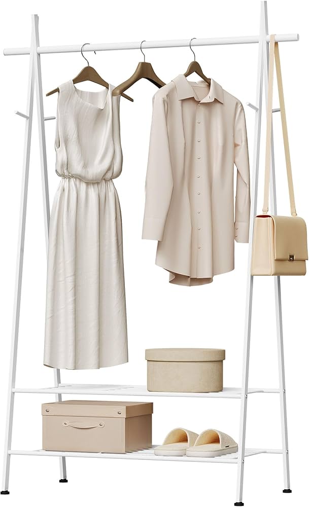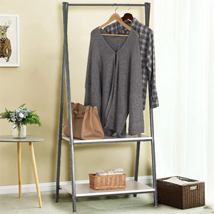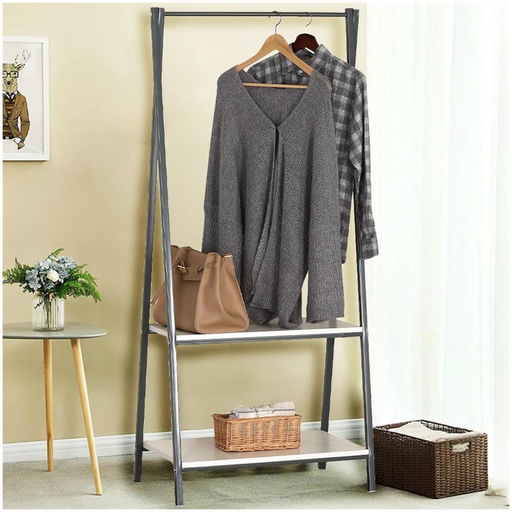 BAKAJI - Stand Appendiabiti Da Terra Con 2 Ripiani MDF Struttura In Metallo Salvaspazio