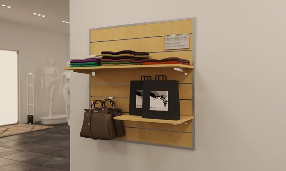Adatto per l'uso in negozi di abbigliamento, camerini, armadi e altre aree di stoccaggio. Le dimensioni di ogni gancio sono di 10,5 x 5,5 x 22,5 cm, offrendo uno spazio adeguato per appendere pantaloni, camicie e giacche. barra appenderia dogato cromata perchero cromada Barre Appenderia Per Negozio BARRA PARETE APPENDERIA PER DOGATO APPENDIABITI PORTA ABITI ARREDO Barra Appenderia Dogato Il prodotto è certificato con il codice EAN 9145369815986 e rientra nella categoria CLOTHES_HANGER. Materiale di Qualità: Realizzato in lega di acciaio resistente e durevole, con finitura verniciata a polvere per una maggiore resistenza all'usura. Il kit è composto da un unico pezzo e può essere facilmente installato in qualsiasi parete liscia. Design Moderno: Kit appenderia dal design moderno e sofisticato, adatto per arredamento negozi e abbigliamento. Questo kit di appendiabiti da parete inclinato di Centro Negozi Retail and Office Solutions è ideale per l'arredamento di negozi e la presentazione di abbigliamento.