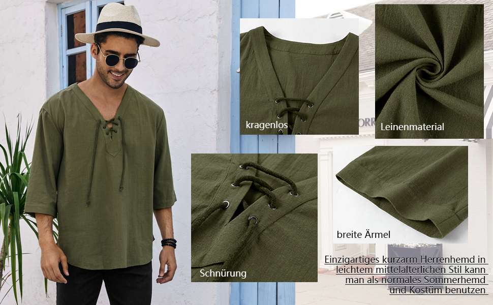 Materiale del lino: Una miscela di 70% cotone e 30% lino garantisce il suo elevato comfort. Camicia Lino Uomo Manica Corta BIBOKAOKE Camicia A Maniche Corte Da Uomo, Con Stampa Estiva Sul Giorno Dell Indipendenza Camicia Per Il Tempo Libero Camicia Floreale Camicia Estiva Da Uomo Per Tutti I Giorni Per Il Lavoro Per 122613147 Camicia In Lino Uomo Per il tempo libero e le attività a tema: Con lacci, questa camicia è adatta sia per tutti i giorni che per eventi medievali. Il tessuto è morbido come il cotone e traspirante come il lino. Camicia in lino, da uomo, a maniche corte, con scollo a V, vestibilità larga, vintage, medievale, da uomo, leggera, comoda, traspirante, con lacci · S · M · L · XL Facile da abbinare: la camicia estiva può essere indossata con pantaloncini, infradito e occhiali da sole per un look da spiaggia o con jeans o pantaloni per un outfit elegante e sofisticato. Ma il materiale di lino impedirà tali momenti imbarazzanti. Una camicia estiva ampia con un design piccolo lo rende un top comodo e bello. Può essere facilmente combinato con una varietà di oggetti per creare una varietà di look eleganti. Sotto l'ambiente asciutto, l'abbigliamento in plastica crea facilmente una carica elettrostatica. Offerta: Sotto la camicia è ora disponibile verde, beige, bianco, blu, blu scuro e nero. Scollo a V: sufficiente libertà di movimento per il collo è particolarmente resistente nelle calde giornate estive. Ogni colore ha dalla taglia M alla XXL. Materiale in lino altamente empohlenes Il materiale di lino o una miscela di cotone e lino è altamente raccomandato. Non solo porta un elevato comfort sul corpo, ma anche un buon effetto. Semplicemente un must have per le giornate informali! Cura dell'abbigliamento & Nota: lavare a mano o in lavatrice, appendere o asciugare in asciugatrice a bassa temperatura.
