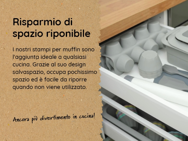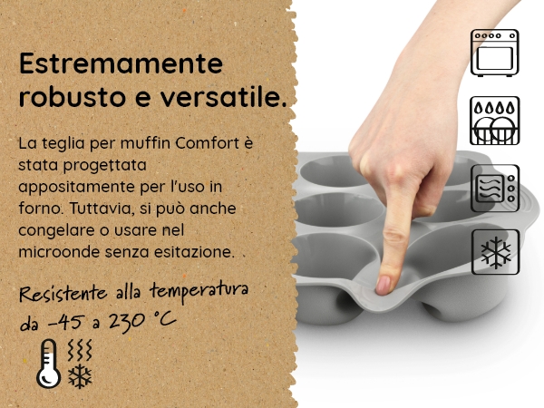 Come procedere durante il primo utilizzo? Lavare con acqua e sapone o in lavastoviglie e iniziare subito a usarlo! 1 Cesti dilievitazione 2 Stampi per muffin 3 Stampi per plumcake 4 Ciambellone 5 Tappetino da forno Le migliori offerte per Backefix Comfort Stampo per muffin in silicone 75 x 55 cm XXL 4 cm di (m2a) sono su Confronta prezzi e caratteristiche di prodotti nuovi e usati Molti articoli con consegna gratis Per cuocere, congelare, scongelare, porzionare, conservare. Pane salutare Cuocere con stampi in silicone senza fastidiose aderenze e unto Qual è la temperatura massima consentita? Il campo di utilizzo va da -45°C a 230°C. Silicone puro e per uso alimentare senza sostanze nocive e bisfenolo A (BPA), inodore e insapore. Versatilità senza limiti: lo stampo per muffin profondo di Backefix lascia libero sfogo alla creatività. Design robusto e solido: Lo stampo in silicone per muffin costituisce non solo un bel colpo d'occhio, ma anche è facile da maneggiare grazie alle maniglie che garantiscono extra stabilità. Lavabile in lavastoviglie. I migliori muffin Facile da sformare, non serve più la carta da forno. Così deve essere un buon pane. Stampi Per Muffin E Cupcake Backefix KOMFORT Mini Stampo Per Muffin In Silicone Piccolo Con 24 Grandi Cavità Da 55 X 35 Cm E 3 Cm Di Altezza Mini Stampo Per Muffin In Silicone 24 Teglia Muffin Deliziosi dolci La scelta migliore per te e la famiglia Cottura sana e consapevole: risultati migliori senza ungere lo stampo in silicone per mini muffin, basta riempire le cavità di impasto senza pirottini, cuocere, far raffreddare e tirare fuori i muffin. Sono possibili delle discolorazioni? Sì, è possibile a causa di un uso frequente e di alimenti coloranti e grassi (in alcuni punti). Cottura facile con lo stampo in silicone per pirottini da muffin Grazie alle proprietà antiaderenti della nostra teglia per muffin di alta qualità, non è più necessario ungerla. Adatto per forno a gas, friggitrice ad aria calda o freezer (da -45 °C a 230 °C). Antiaderente e senza strato antiaderente chimico: lo stampo per muffin Backefix maxi in silicone è diverso da quelli convenzionali dal momento che non è dotato di uno strato antiaderente chimico. La superficie interna liscia come uno specchio e il perfetto equilibrio tra stabilità e flessibilità fanno sì che, una volta raffreddati, i muffin si stacchino da soli. Infornate e divertitevi!