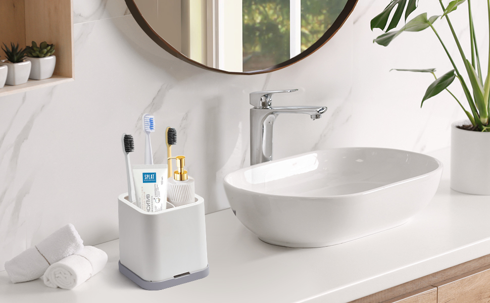 Design Bianco Minimalista & Multifunzione: Il colore bianco neutro si integra con qualsiasi stile di bagno, cucina o ufficio. Contenuto: 1 base con fori di drenaggio, 5 divisori rimovibili Materiale: ABS senza BPA, antiscivolo Utilizzi Multipli Oltre al bagno, è ideale per organizzare spezie in cucina o penne in ufficio. Dettagli Tecnici Colore: Bianco (design minimalista) consegna pronta 1867 Le dimensioni compatte (19x9x12 cm) lo rendono adatto a spazi ridotti come angoli di lavandini o scaffali stretti. I 5 scomparti regolabili si adattano a spazzolini elettrici spessi, tubetti di dentifricio o piccoli oggetti (filo interdentale, pinzette). Con dimensioni compatte (19x9x12 cm), organizza pennelli per trucco, rasoi o materiale da ufficio senza occupare spazio. Base Antiscivolo & Stabilità Ottimale: Il portaspazzolini da bagno include strisce in gomma antiscivolo sulla base, garantendo stabilità anche su superfici bagnate. Per pulirlo, rimuovi i divisori e lavali con acqua tiepida o nel cestello superiore della lavastoviglie. La base antiscivolo e il sistema di drenaggio assicurano sicurezza e pulizia su superfici umide. Elettrici SOLEJAZZ Organizer Da Bagno, Ripiano Per Lavabo A 2 Livelli, Per Cucina E Bagno, Organizer Porta Spazzolini I bordi rialzati prevengono la caduta accidentale degli oggetti. Il design smontabile consente una pulizia completa in lavastoviglie (max 50°C) o con acqua e sapone. Materiale Durevole & Facile Pulizia: Realizzato in ABS senza BPA, l’organizer resiste all’umidità e ai graffi.