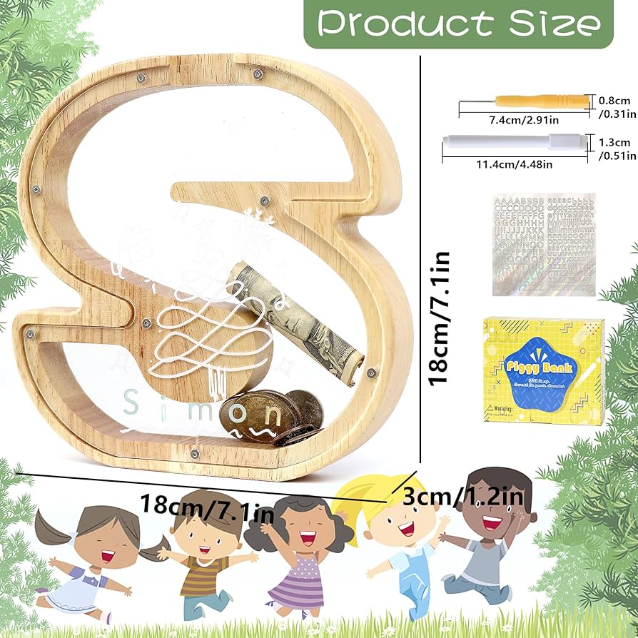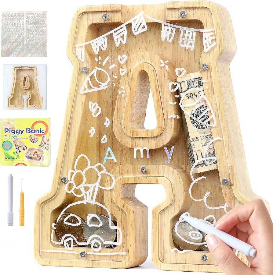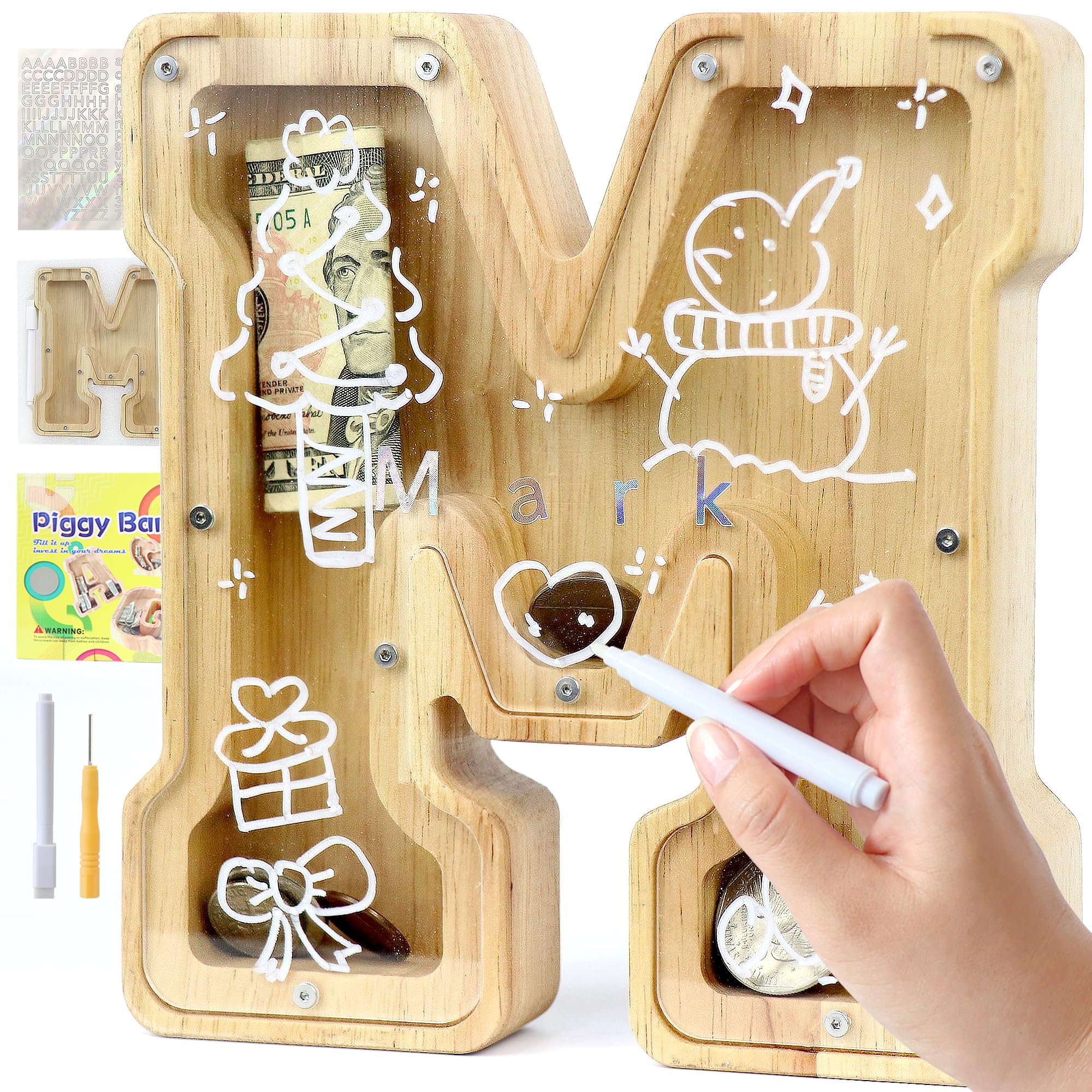 Lakpopya Salvadanaio Bambini Bambina In Legno Salvadanaio Apribile Salvadanaio Personalizzato Di Lettre A-Z Salvadanaio Trasparente Con Adesivo & Pennarello & Cacciavite, Regali Per Bambini (B) : Amazon.it: Casa E Cucina