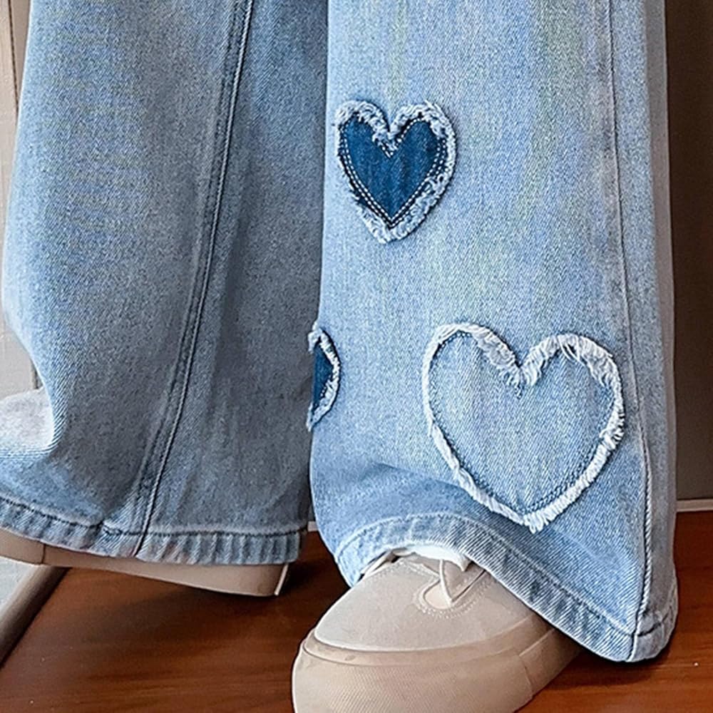 Jeans Lunghi Bambina Pantaloni Ragazza Pantaloni Larghi A Vita In