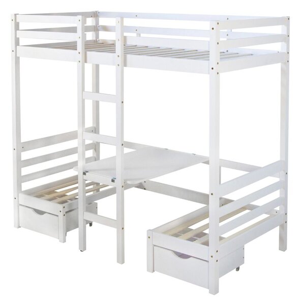 Moimhear Letto A Castello Per Bambini E Ragazzi, Lettino Per Bambini Telaio In Pino Massiccio Facile Da Montare 90 X 200 Cm Bianco Wx000304