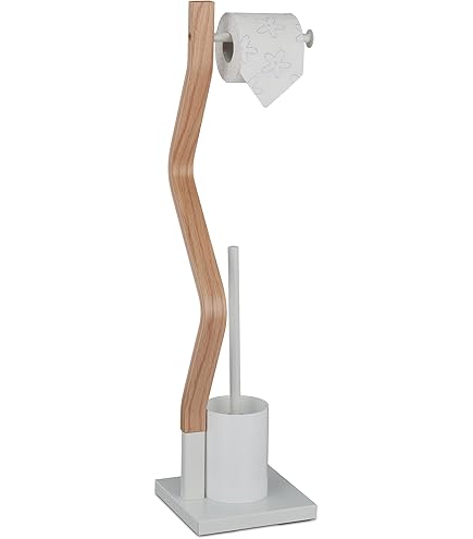 Relaxdays WC Garnitur Bambus & Eisen Piantana Portarotolo E Scopino
