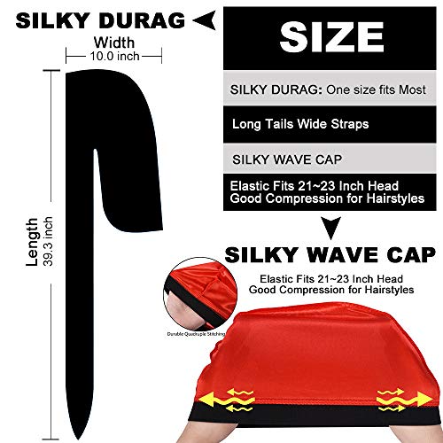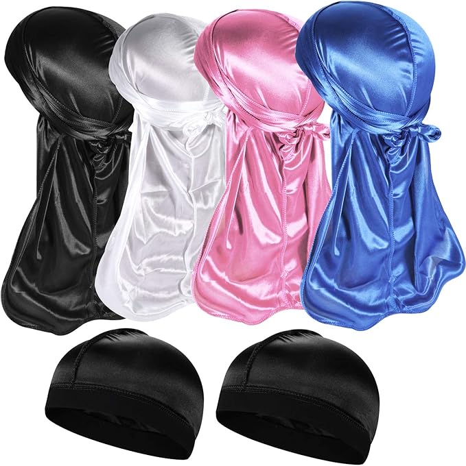 Molain 6Pcs Wave Cap For Men Silky Durags Elastic Band Wave Caps For 360 540 720 Waves Soft Breathable Satin Durag Unisex Adults Kids Skullies Beanies Hats Shower Cap