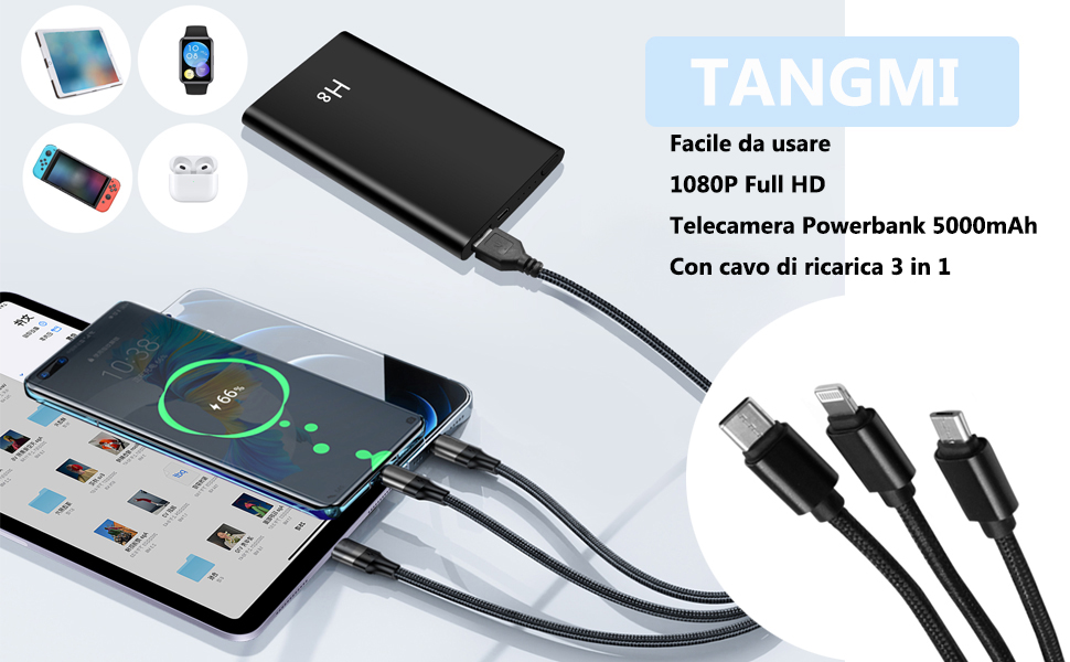 TANGMI Telecamera Nascosta Spia, 1080P HD Telecamera Nascosta Power Bank, Sensore Di Gravità Telecamera Spia Con Visione Notturna Per La Ricarica Dei Dispositivi Mobili : Amazon.it: Elettronica