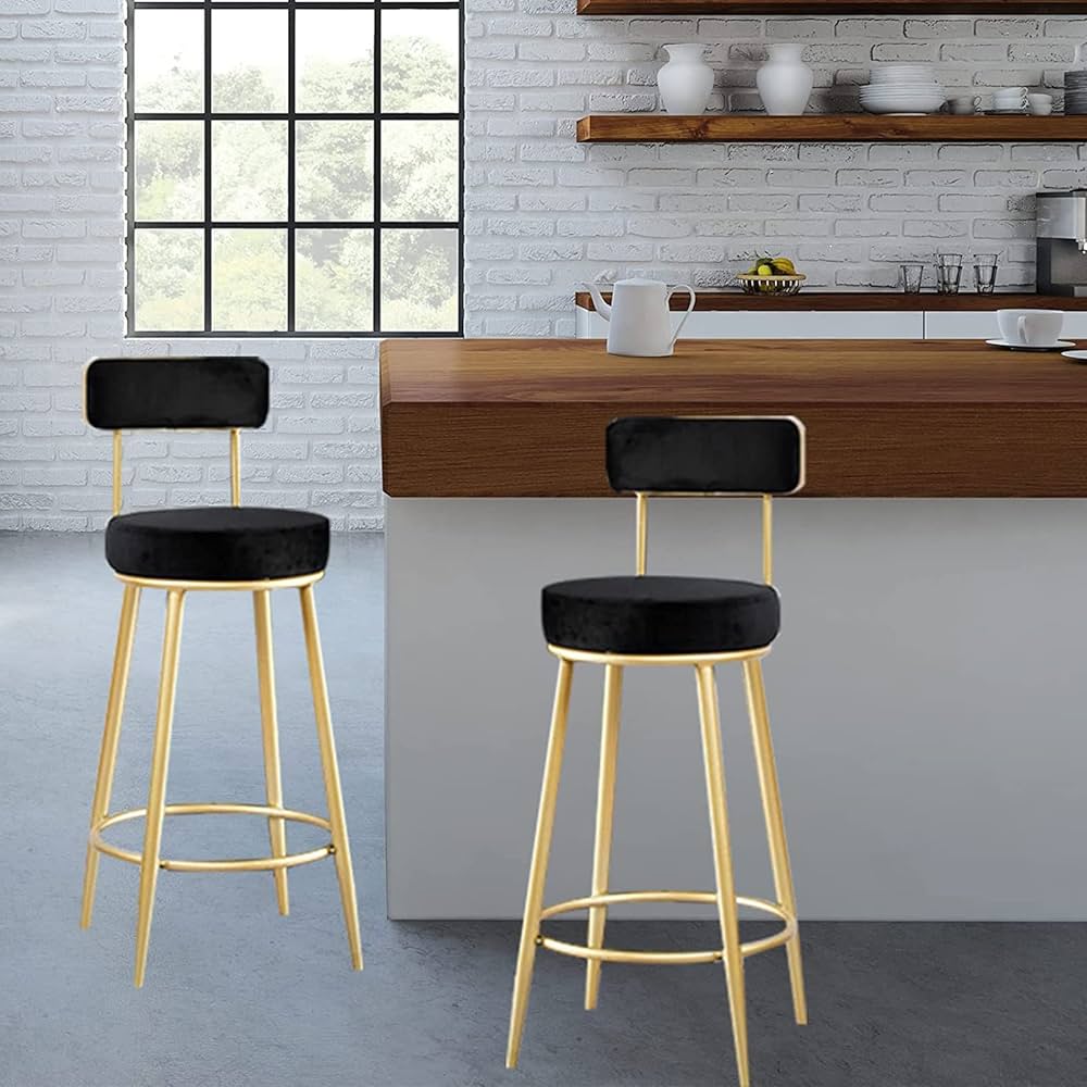 Set Di 2 Sgabelli Da Bar In Velluto Con Schienale E Poggiapiedi