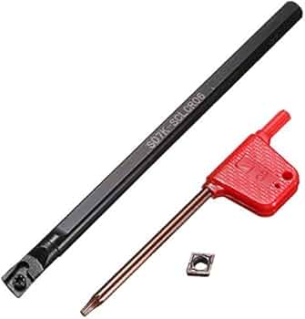 Utensili Tornio Set Di Utensili Per Tornio 7 Pezzi 16mm Gambo Tornio Barra Di Alesatura Set Di Portautensili Per Tornitura Con Inserti In Metallo Duro E Chiavi Set Di Barre Di Alesatura Per Utensili Porta Per Inserti Per Tornio Barra di alesatura ad alta precisione: il supporto per barra di alesatura per tornio S07K-SCLCR06 da 7 mm offre precisione e prestazioni eccezionali. Facili da usare, i prodotti sono stati rifiniti e completamente rettificati dopo la lavorazione. Ha elevata durezza e resistenza all'usura, lunga durata, i componenti sono temprati dopo la tempra. Materiale in acciaio rapido duro e non facile da rompere Forte e affidabile: con la sua elevata presa e la forte resistenza agli urti, questo strumento di supporto per barre noiose offre un chiaro vantaggio nelle operazioni di taglio su larga scala. Vari ambienti di lavorazione: adatto per operazioni di semilavorazione e finitura, questo strumento funziona bene in una varietà di ambienti di lavorazione. La macinazione di precisione e l'ispezione manuale garantiscono prestazioni e durata ottimali. È necessaria solo una chiave per completare il processo di sostituzione, rendendolo comodo e risparmio di tempo. Offre un notevole vantaggio di velocità e offre prestazioni affidabili anche in ambienti difficili, come ghisa o ambienti di lavorazione sporchi.