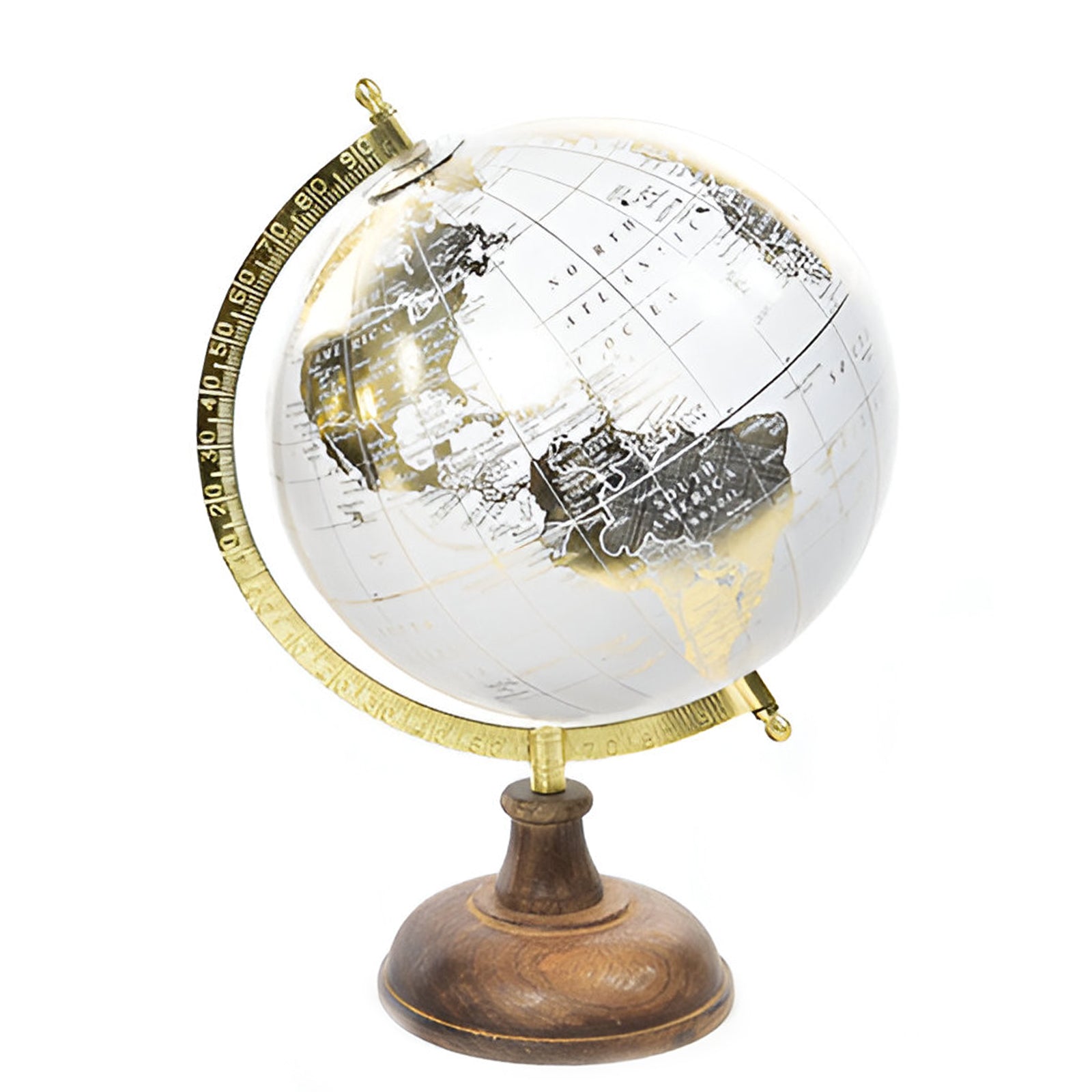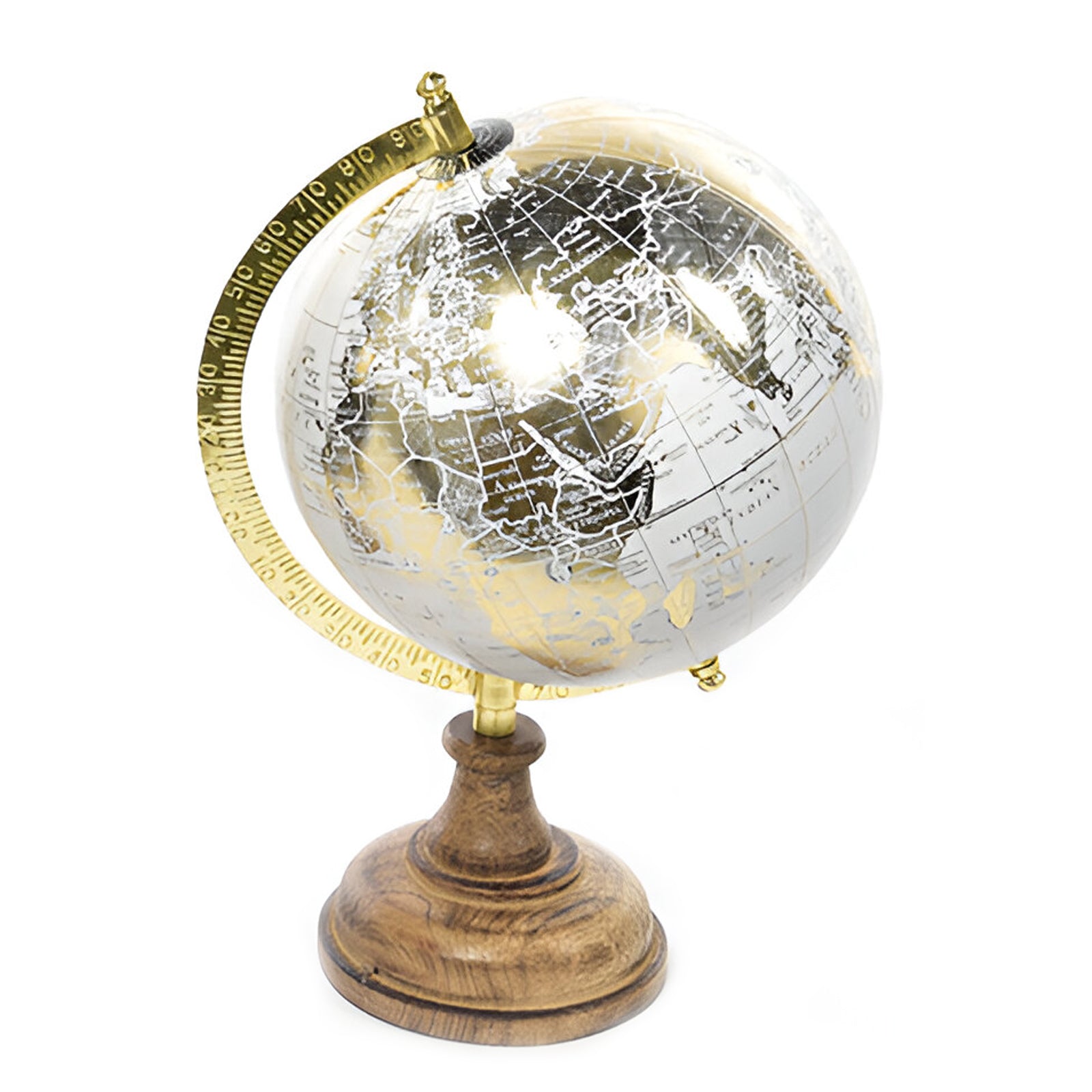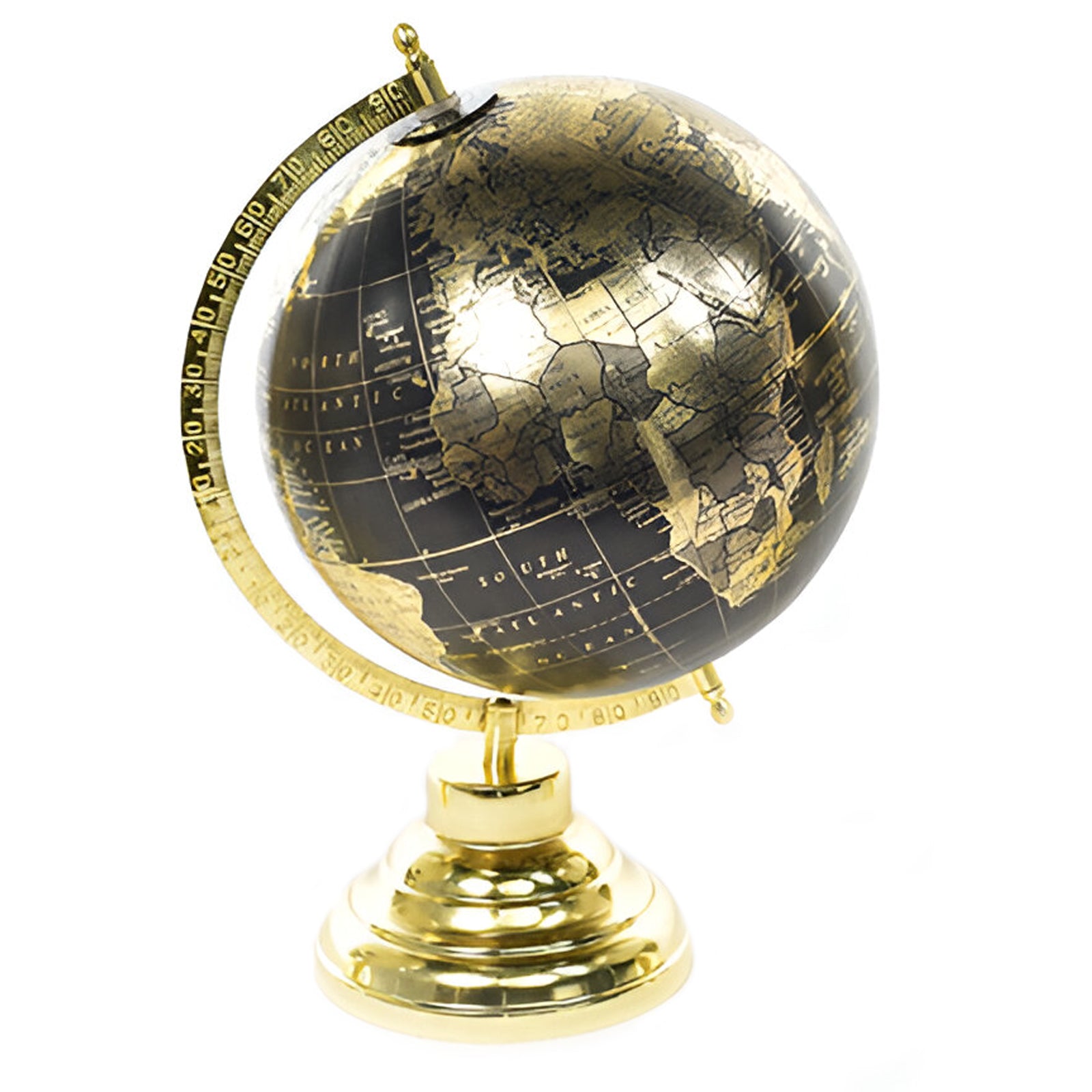Mappamondo Per Interno Con Base E Struttura In Ottone Chiaro Il mappamondo con base in ottone per decorazione interno, alto 33,5 cm, è un raffinato elemento d'arredo che aggiunge un tocco di eleganza a qualsiasi ambiente. La base in ottone non solo garantisce stabilità, ma aggiunge anche un elemento di pregio che si integra perfettamente con diversi stili di arredamento, trasformando questo mappamondo in un pezzo decorativo distintivo e di grande impatto visivo. Alta qualità Il prodotto descritto è un mappamondo dotato di una base e illuminato da una luce LED, concepito per la decorazione d'interni. Vai al contenuto Chi siamo Questo mappamondo presenta una rappresentazione dettagliata del globo terrestre, montata su una base in ottone lucido che conferisce un aspetto sofisticato e lussuoso.