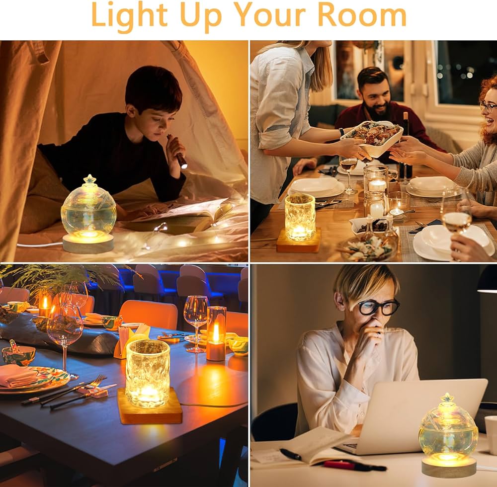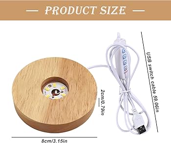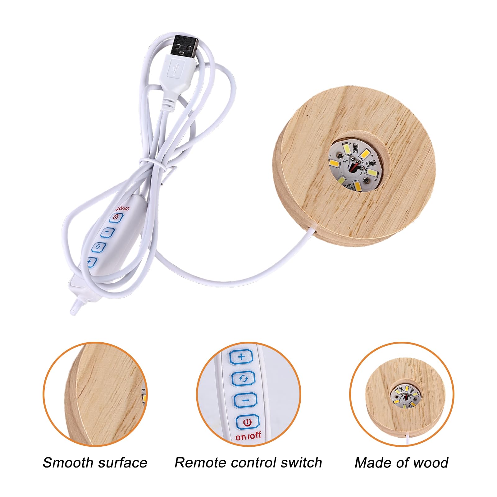 Base Luminosa A LED, In Legno, 2 Pezzi, USB, Per Vetro Acrilico, Colore Caldo, Base In Legno, Forma Quadrata/rotonda, Per Display A LED, Per Cristalli, Lenti In Vetro, Acrilico, Resina (rotondo
