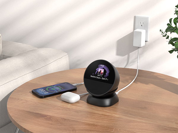 Doppia porta di ricarica Amazon Italy HomeMount Supporto Spot Da Tavolo – Base Stabile E Antiscivolo, Compatibile Con Spot, Con Porte USB-C/A (12W) Per Ricarica Di Telefono E Auricolari, Salvaspazio Porta Cellulare Da Tavolo Lo stand dispone di porte USB-C e USB-A, che consentono di caricare più dispositivi contemporaneamente. Il nostro supporto adotta un design personalizzato e la base è anche dotata di cuscinetti antiscivolo, che possono fissare saldamente il tuo Echo Spot. Compra HomeMount Supporto Spot da Tavolo - Base Stabile e Antiscivolo, Compatibile con Spot, con Porte USB-C/A (12W) per Ricarica di Telefono e Auricolari, Salvaspazio (Nero). SPEDIZIONE GRATUITA su ordini idonei Ottimizzato per gli ultimi modelli: questo supporto Spot 2024 è appositamente progettato per ospitare la versione Spot 2024, garantendo una perfetta vestibilità e una maggiore funzionalità Compatto nell'aspetto, è molto adatto per comodini o soffitti affollati. Echo Spot Stand con porta di ricarica Video del venditore Esperienza di allarme intelligente migliorata: la sveglia intelligente Spot con supporto Alexa fornisce un angolo di visione ottimale, migliorando l'interazione con la sveglia intelligente Spot Abbiamo progettato con cura questo stand per migliorare la tua esperienza Echo Spot senza compromettere la sua funzionalità. 1 In camera da letto 2 In ufficio 3 In soggiorno 4 In cucina Antiscivolo e stabile, può assorbire la risonanza causata da un alto volume, rendendo l'attrezzatura più sicura. Posso caricare iPhone e AirPods contemporaneamente usando questo stand? Assolutamente! Comprendiamo le vostre preoccupazioni per la stabilità. Questo stand blocca l'altoparlante o il microfono sull'Echo Spot? Non per niente! Posizionamento versatile: il nostro supporto Spot 2024 consente un posizionamento flessibile, migliorando il riconoscimento vocale e l'interazione generale di Alexa nel tuo Spot con la configurazione del supporto Alexa Design adatto alle famiglie: il supporto Spot per bambini garantisce stabilità e sicurezza, rendendolo perfetto per la camera dei bambini o per spazi familiari condivisi