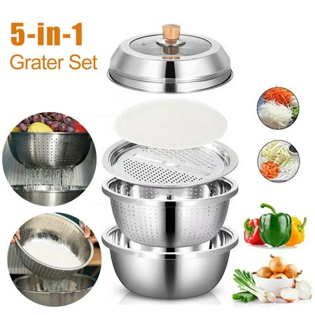 Multifunctional Stainless Steel Basin 5-in-1 Grater Set With Lid