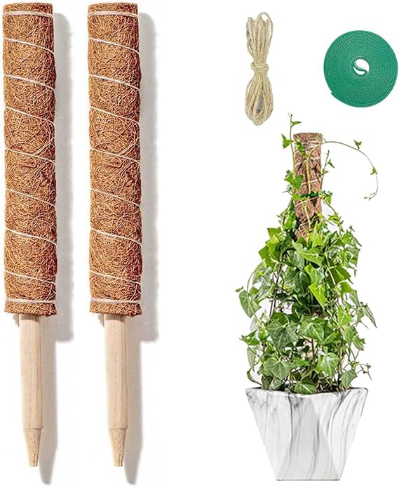 2 Pezzi Fibra Di Cocco Per Piante, Fibra Di Cocco Piante Rotolo, Bastone Piante Rampicanti 50-100cm, Supporto Piante Rampicanti, Piante Rampicanti Interno Esterno Vaso Giardino Muschio Pomodori Totem