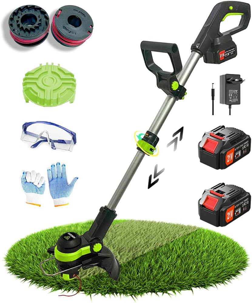 Wrneaoch Decespugliatore A Batteria 21V Decespugliatore Con 11.000 RPM E Motore Da 750W Tagliaerba Elettrico Con 2 Batterie Da 4,0 Ah è Ideale Per