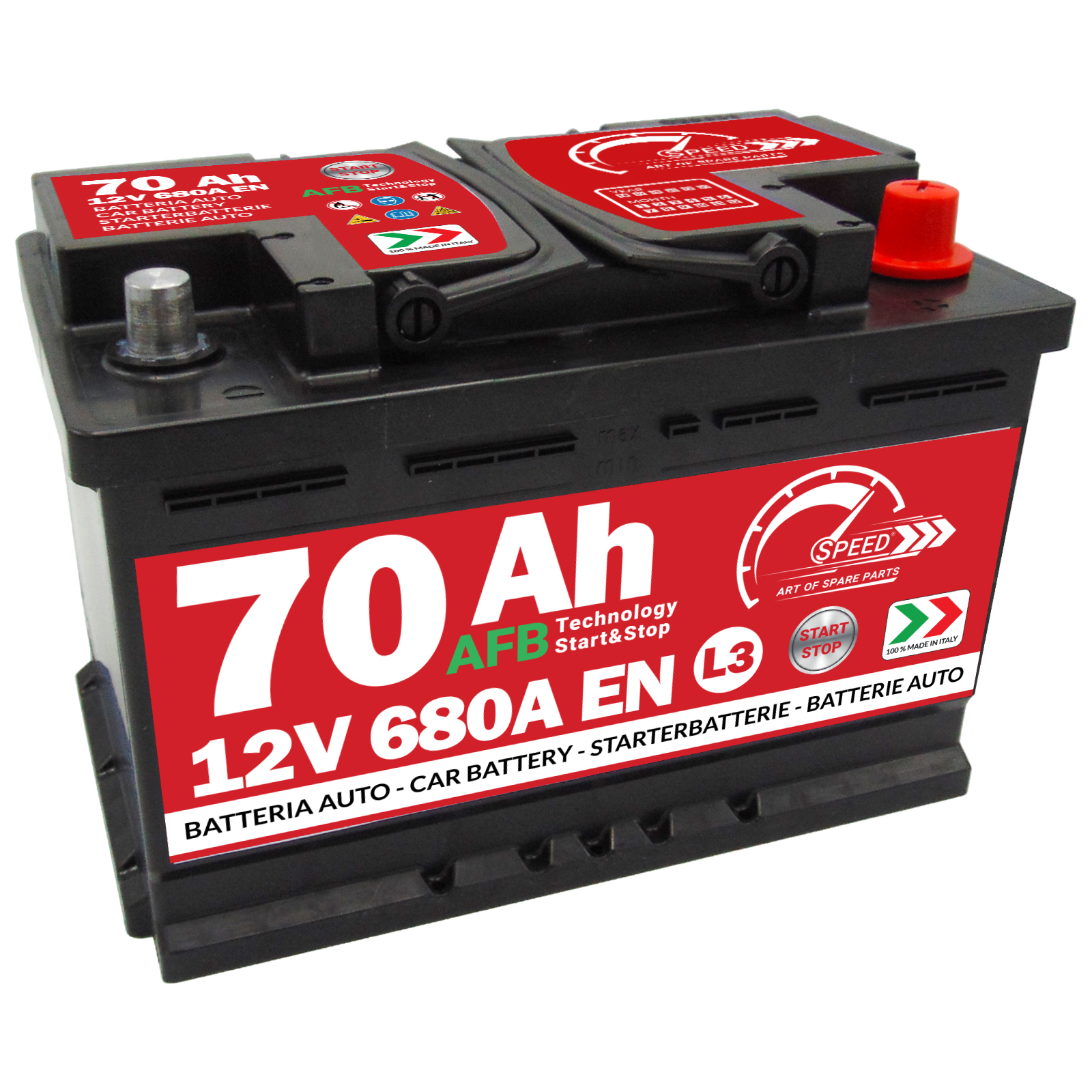 Nel catalogo Speed sono presenti batterie per auto dotate di Start&Stop con tecnologia AGM (Gel) e AFB (Efb), disponibili dalla 60Ah alla 110Ah La batteria non presenta acido a corredo. Autobateria 70ah Start Stop Batteria Auto Originale FIAT 70Ah 680A 12V - Ricambi Auto SMC Autobateria 70ah 760a Start Stop Disponibili in una vasta gamma di misure, le batterie Speed AGM sono progettate per adattarsi a ogni tipo di auto, garantendo un avvio rapido e affidabile in qualsiasi condizione atmosferica. Grazie alla loro tecnologia avanzata, assicurano un avvio affidabile anche in condizioni estreme di temperatura e carico. 12V LiFePO4 deep cycle batteries with a 3 year/2000 cycle warranty. 12V lithium iron phosphate batteries. Monitor performance with Bluetooth app. Order now Attenzione: Rimuovere il TAPPO ROSSO di protezione Rimuovere il TAPPO ROSSO di protezione dove presente per evitare rigonfiamenti o rotture della batteria. La tecnologia EFB consente una ricarica più rapida e una maggiore capacità di gestire cicli di carica/scarica frequenti, ottimizzando così l'efficienza del sistema Start&Stop. Descrizione prodotto Speed Art Of Spare Parts Batterie per avviamento Speed Scopri il vasto assortimento di batterie d'avviamento disponibili per tutte le auto dalle piccole alle grandi dimensioni. I tappi sono uno strumento utile al trasporto via terra delle batterie, ma sono molto dannosi se non rimossi e ancora di più se la batteria viene utilizzata con il tappo ancora inserito. Progettate appositamente per veicoli dotati di sistema Start&Stop, queste batterie offrono una maggiore resistenza alle sollecitazioni cicliche, garantendo prestazioni affidabili e durature nel tempo. Ideali per soddisfare le esigenze di ogni veicolo, le batterie Speed sono sinonimo di affidabilità e qualità. Grazie alla loro tecnologia avanzata, assicurano un avvio rapido e senza problemi, sia in climi freddi che caldi. Batterie avviamento con tecnologia AGM Start&Stop Le batterie avviamento Speed con tecnologia AGM rappresentano l'apice dell'innovazione nel settore delle batterie per auto. Con la loro capacità di fornire una potenza costante e affidabile nel tempo, le batterie Speed AGM rappresentano la scelta ideale per chi cerca il massimo delle prestazioni e della durata nel sistema di avviamento del proprio veicolo. Disponibili in una vasta gamma di misure e capacità, le Batterie Avviamento Speed sono la scelta ideale per assicurare un funzionamento efficiente e continuativo dei veicoli pesanti e industriali, garantendo prestazioni affidabili e durature nel tempo. BATTERIA AUTO SPEED L3 AFB Technology - SPEE7904031 70AH 680A 12V MISURE: Lunghezza 278mm x Larghezza175 mm x Altezza190mm