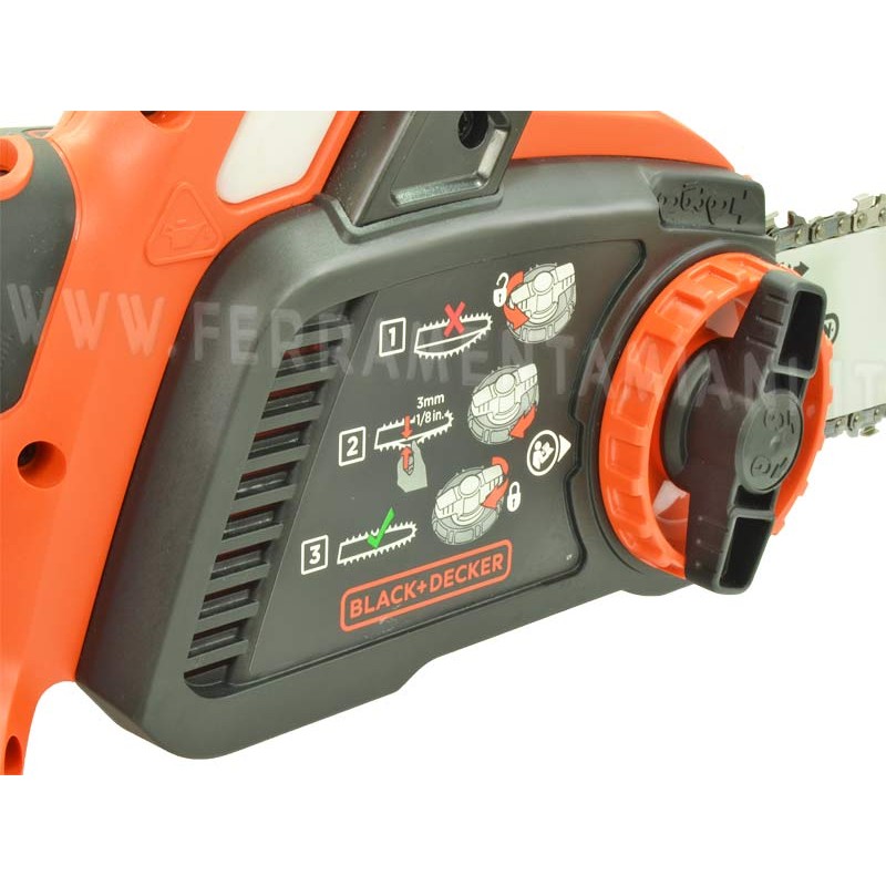 Con una batteria agli ioni di litio da 2,0 Ah è possibile eseguire fino a 150/220 tagli (3,5 cm) con una sola carica della batteria, senza cavi fastidiosi e indipendentemente dalle fonti di alimentazione. Montaggio e regolazione della catena facile e velo Taglio effettivo di 16 cm Taglia fino a 200 rami di diametro 3,5 cm per carica. Avvitatore A Batteria BLACK+DECKER GKC1820L20-QW - Elettrosega A Batteria Litio, Fino A 20 Cm Di Taglio 18v 20 Ah Nero 137945s Motosega A Batteria Senza filo - non c'è pericolo di tranciare il filo Leggera per una maggiore comodità e bilanciamento in uso