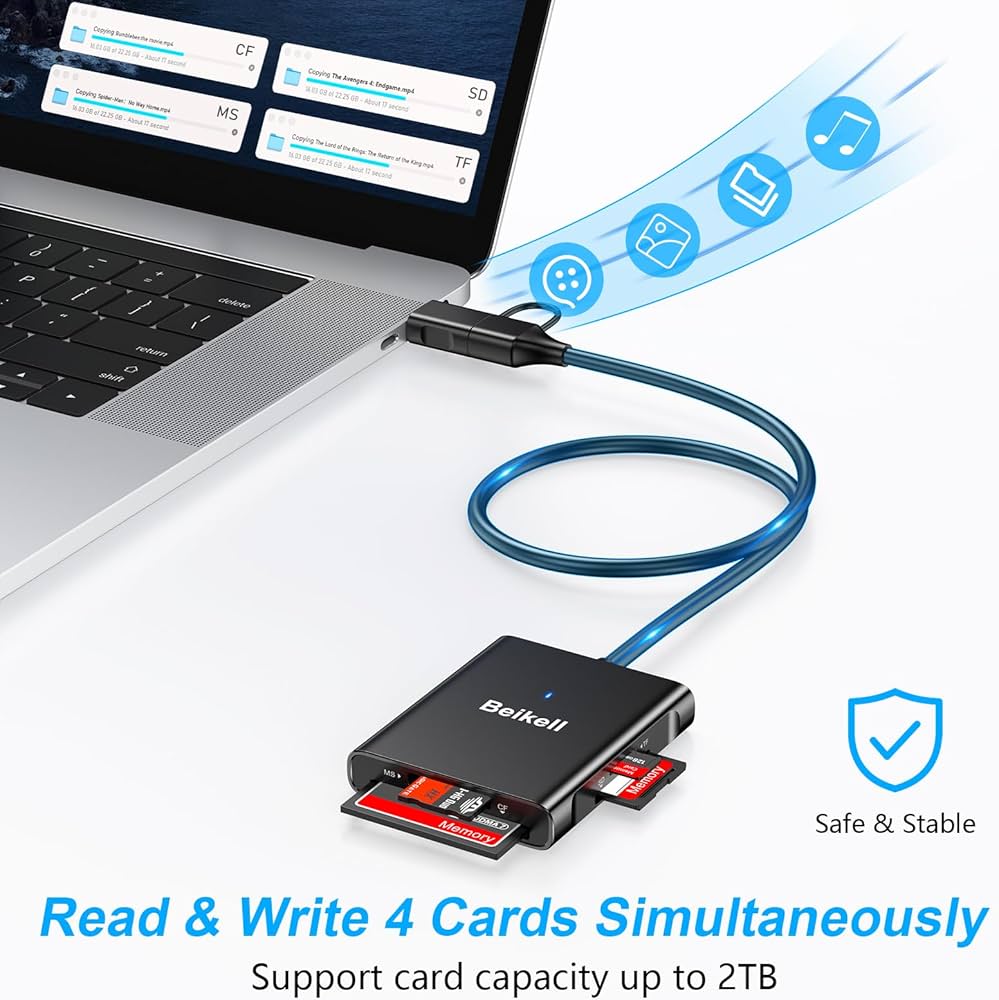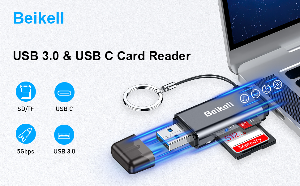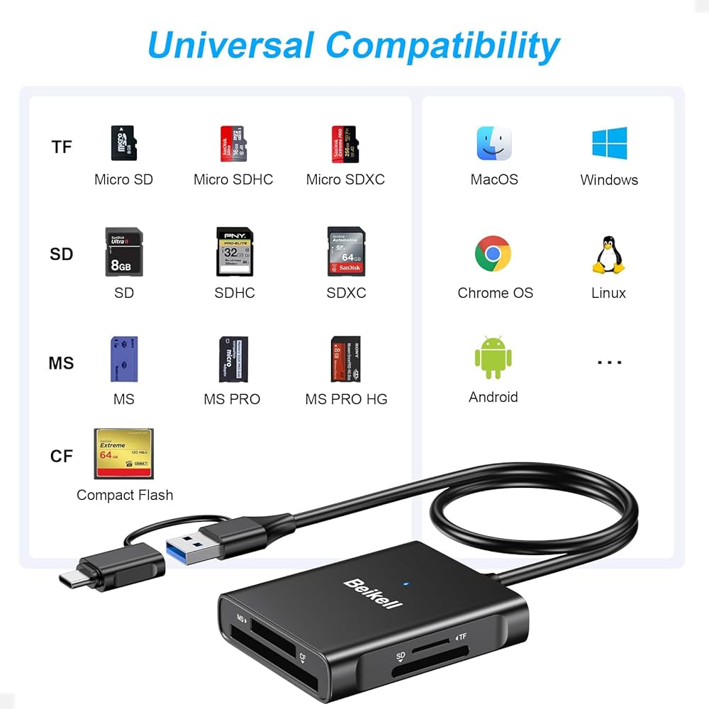 Beikell Lettore Di Schede SD, Alta Velocità 4 In 1 USB-C&USB 3.0