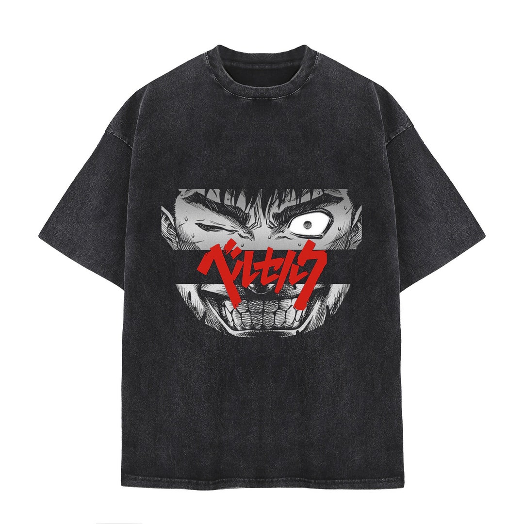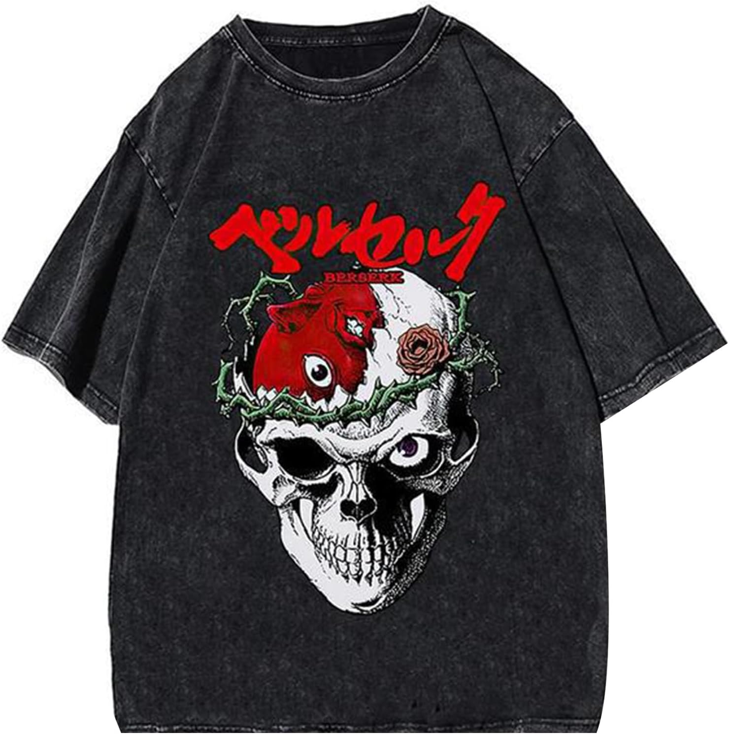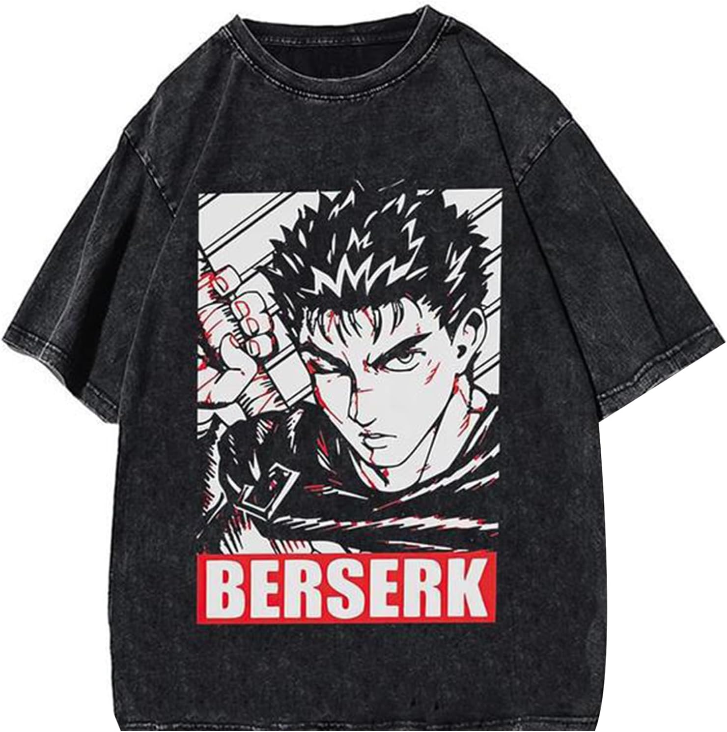 XSLGOGO Kenpuu Denki Berserk T-Shirt Berserk Vintage Washed T-Shirt A Maniche Corte Oversize Hip Hop Streetwear Nero Spadaccino Guts T-Shirt Guts Worn Tees
