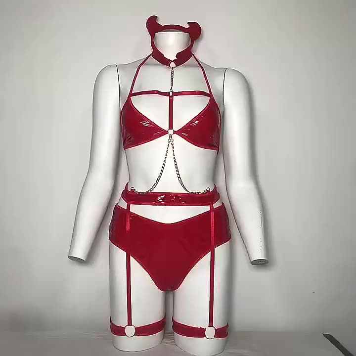 Generico Sexy Lingerie Hot Set Di Biancheria Intima Da Donna Con Lacci In Pelle Con Anello In