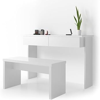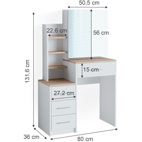Spazio di Grazie al suo sistema di cassetti con 2 cassetti troverete spazio e spazio sufficiente per tutti i vostri articoli di bellezza. FORNITURA: Tavolo da toilette, Istruzioni di montaggio, Materiale di montaggio Toletta Da Trucco Con Specchio Vicco Tavolo Da Toeletta Bianco 120 Cm Con 2 Cassetti, Lara | Bianco Comodino Camera Da Letto La consolle da trucco con specchio presenta una costruzione robusta e un grande specchio rettangolare. Dispone inoltre di due scaffali per riporre i propri accessori di bellezza. DIMENSIONI: La toeletta ha le seguenti misure: 120 cm - Larghezza, 83 cm Tavolo da toeletta Emma Grazie al suo sistema di cassetti con 2 cassetti troverete spazio e spazio sufficiente per tutti i vostri articoli di bellezza. Montaggio semplice Il montaggio semplice consente di configurare facilmente il tavolo da toeletta e di beneficiare immediatamente dei suoi vantaggi. DIMENSIONI: La toletta con specchio ha una larghezza di 120 cm, un'altezza di 83 cm e una profondità di 41,8 cm. Materiale: Truciolare, 16 mm, rivestito in resina melamminica Il tavolo cosmetico è dotato di due ripiani e di un grande specchio rettangolare. La struttura robusta garantisce un utilizzo sicuro e duraturo. Tavolo da toeletta Emma Il nostro tavolo da toeletta di alta qualità Emma rende la vostra routine quotidiana di trucco un piacere. Non passa Il nostro tavolo da toeletta di alta qualità Emma rende la vostra routine quotidiana di trucco un piacere. Dimensioni: 120 x 83 x 41,8 cm (larghezza x altezza x profondità). Peso: 27,5 kg. Contenuto della 1 tavolo da toeletta con Materiale di montaggio e istruzioni Decorazioni non incluse nella confezione