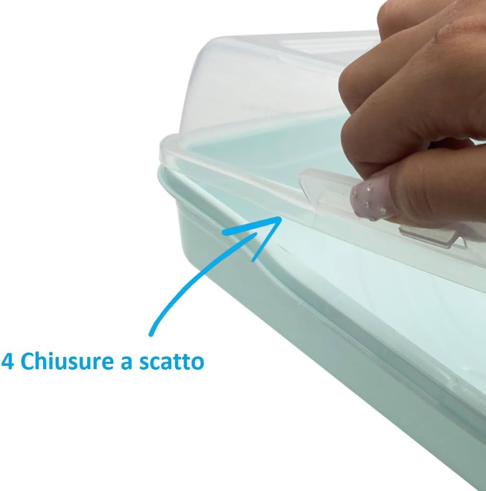 Porta Torta Con Coperchio Scatola Porta Torta Rettangolare Incollata Nuvolato Bianco – Dalla 17,5×32/38cm (100pz Porta Torte Rettangolari Plastica Questo robusto contenitore per torte è il compagno definitivo per chiunque voglia trasportare dolci e torte in modo sicuro e alla moda. Porta torta in plastica rettangolare con coperchio Porta dolci trasparente. Contenitore infrangibile 40x30x10 cm con due chiusure di sicurezza PULIZIA SEMPLICE, PIÙ TEMPO PER GODERSI: Dopo la festa è prima della festa! PIÙ DI UNA SEMPLICE SCATOLA: Questo contenitore di trasporto è un vero e proprio poliedrico e può essere utilizzato anche come vassoio per servire tapas, snack e altro ancora. Ogni occasione diventa così un'esperienza speciale! Così rimane più tempo per le cose belle della vita. La scatola per il trasporto delle torte si pulisce facilmente sotto l'acqua corrente o in lavastoviglie.